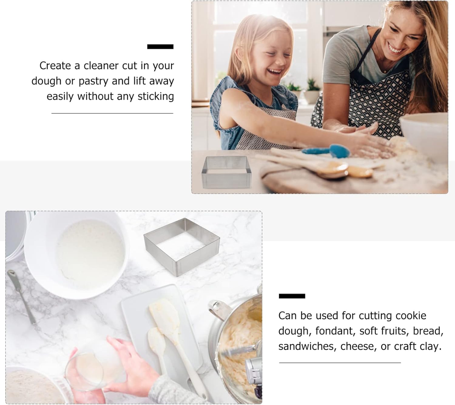 - Versatile Baking Tool: This cake ring is ideal for creating square mousse, cakes, and various desserts, making it a must-have for any baking enthusiast