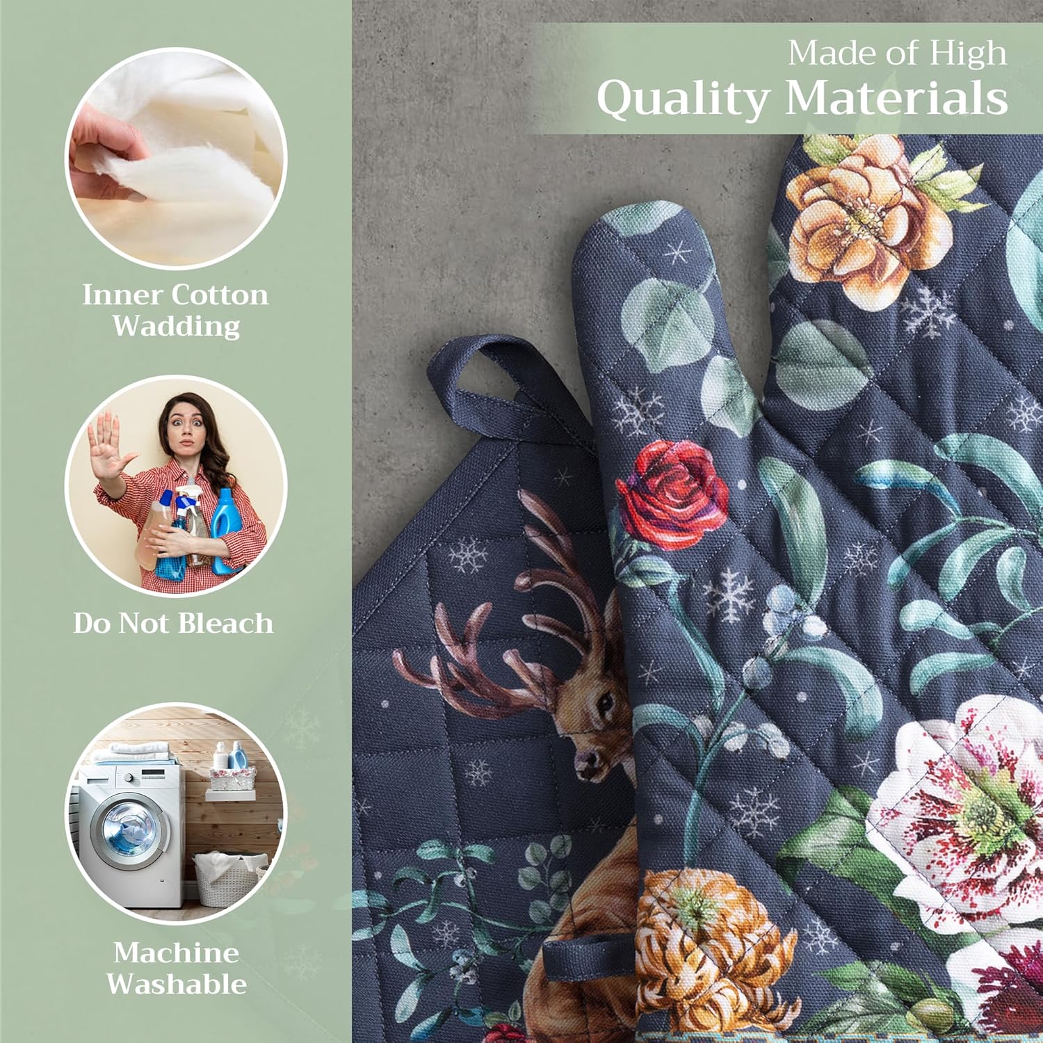 - Premium Quality: Crafted from quilted 100% cotton, this heat resistant oven mitt and pot holder set offers comfort, flexibility, and protection from hot cookware. Ideal cotton oven mitts for daily kitchen use and cooking safety