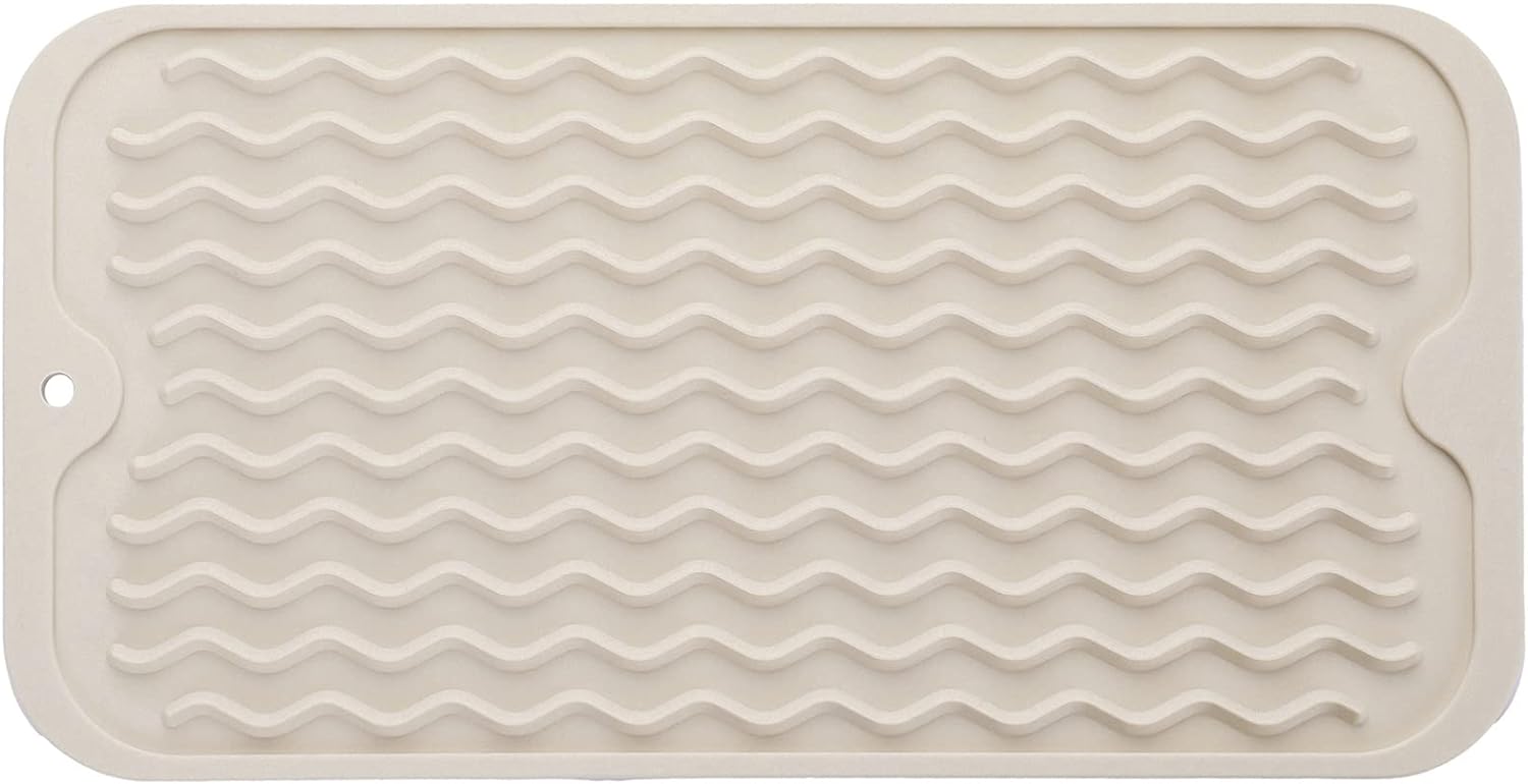 Silicone Dish Drying Mat for Multiple Usage,Easy clean,Eco-friendly,Heat-resistant Silicone Mat for Kitchen Counter or Sink,Refrigerator or Drawer Liner Tapioca S 12 inches x 6 inches