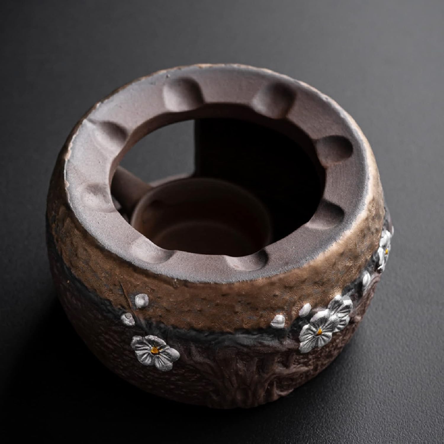 Teapot Warmer Matte Classic Retro Ceramic Universal Tea Warmer Stand Set with Candle Holder Japanese Style for Warming Tea, Coffee and Milk etc.