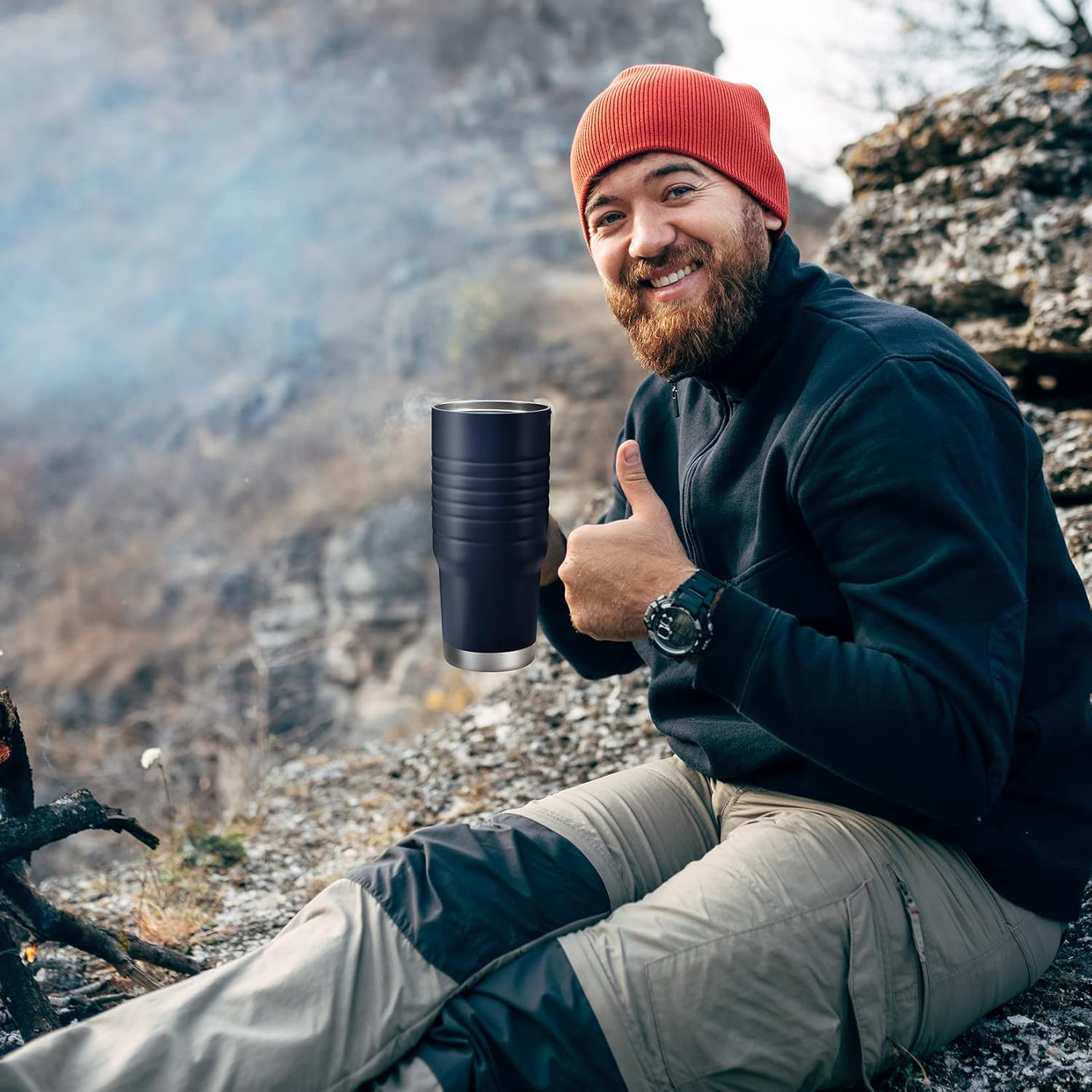 - DELAY TEMPERATURE LOSS: Double Wall Vacuum Insulated improves insulation and delays temperature loss; When you drink hot drinks, it doesn't burn the hand, and it can stay hot for more than 6 hours; When you drink cold drinks, the outer wall of the travel mug will not frost so it will not wet table, keeps cool time can reach 24 hours. ( NOTE: In the case of high temperatures in summer or cold in winter, keeping cool/staying hot time will be affected to some extent)