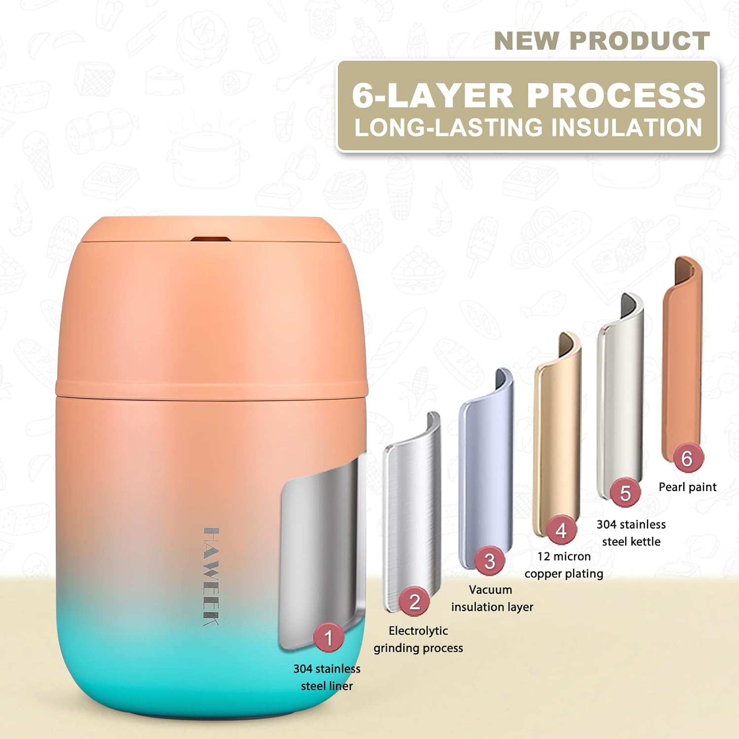 - 【Easy to Open】2 in 1 insulated food jar with a folding spoon, 1 user manual. Notice: Pour in hot & cold water to preheat & pre-cool for 5~10 minutes before packing food.