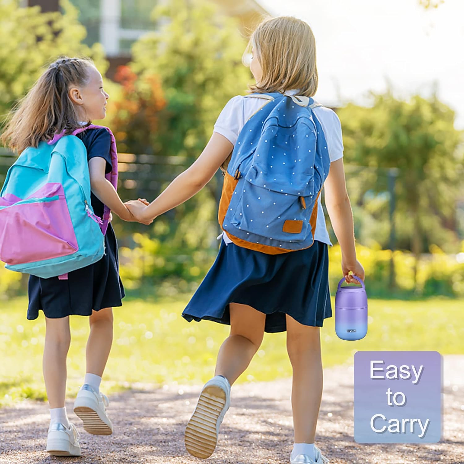 - Our insulated food jar has a unique hidden handle that can reduce the volume of the jar and save more space for you. It fits perfectly in school bags and boxes. The hidden handle could also avoid accidentally opening the lid while carrying school bags.