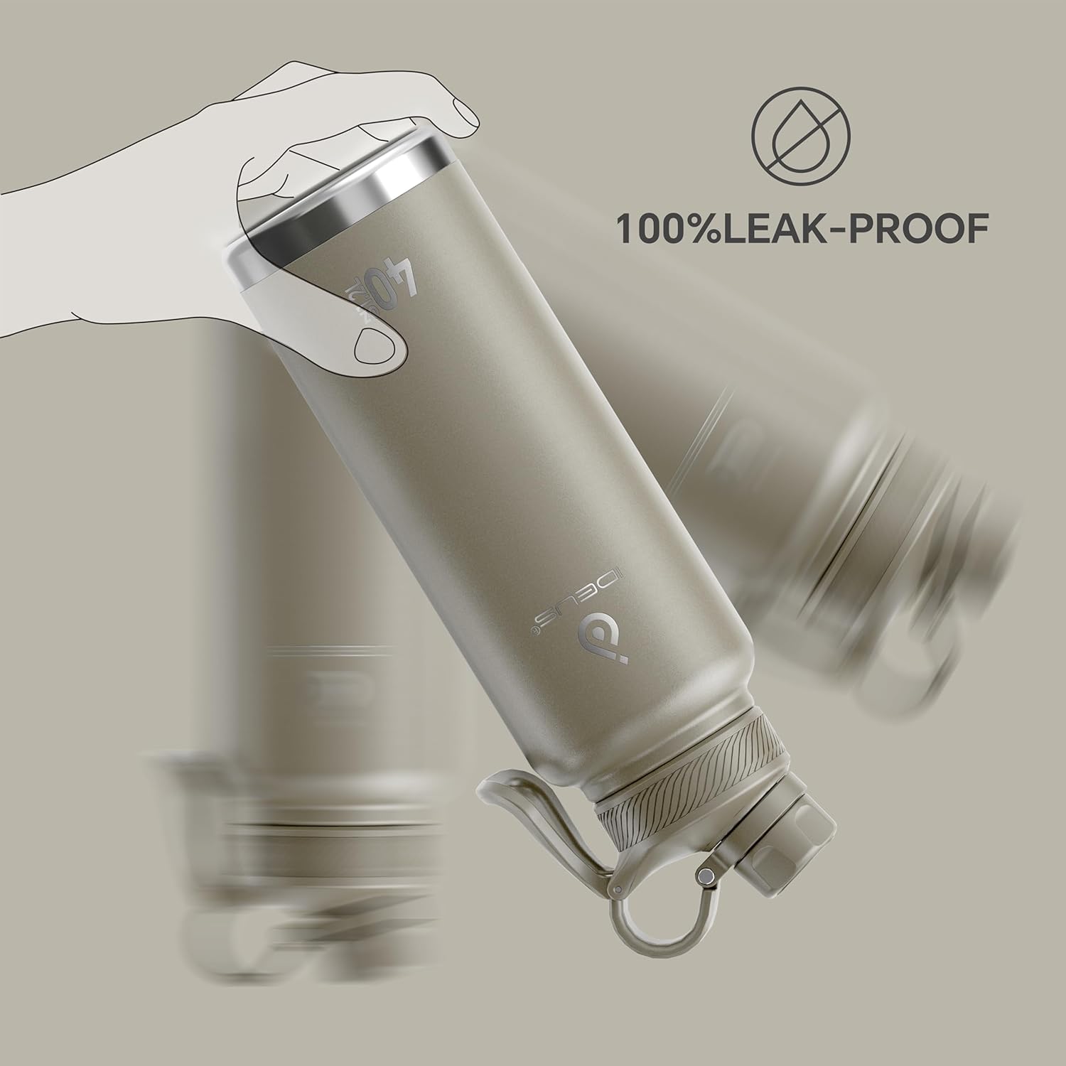 IDEUS Insulated Stainless Steel Water Bottle with 2 Leak-Proof Lids, Thermal Water Flask for Hiking Biking, 40oz, Celadon