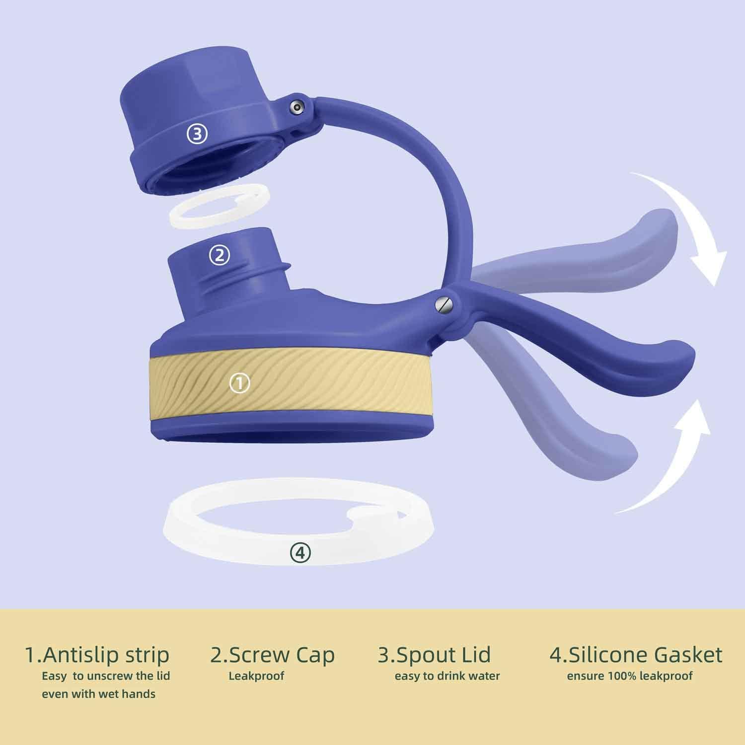 IDEUS Insulated Stainless Steel Water Bottle with 2 Leak-Proof Lids, Thermal Water Flask for Hiking Biking, 32oz, Purple