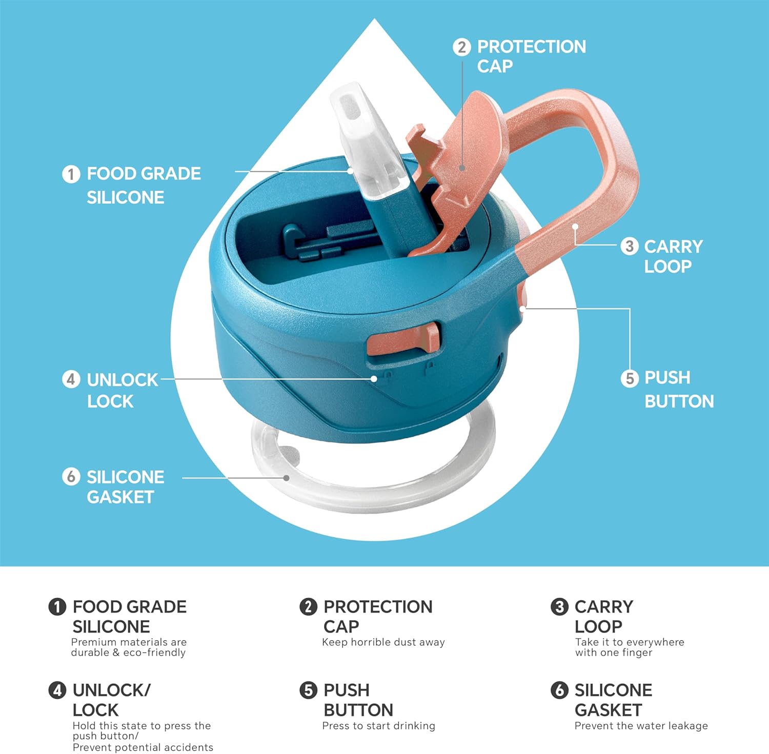 - 【Easy to Clean】 - IDEUS stainless steel water bottle is dishwasher safe. The straw and silicone ring can be removed and cleaned separately. We work together with parents around the world to safeguard sweeties' drinking water health.