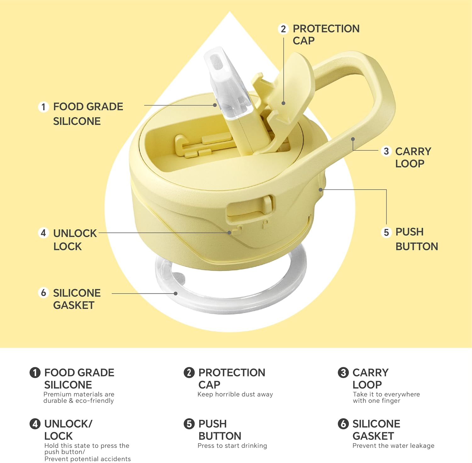 IDEUS Insulated Stainless Steel Water Bottle with 2 Leak-Proof Lids, Thermal Water Flask for Hiking Biking, 32oz, Light Yellow