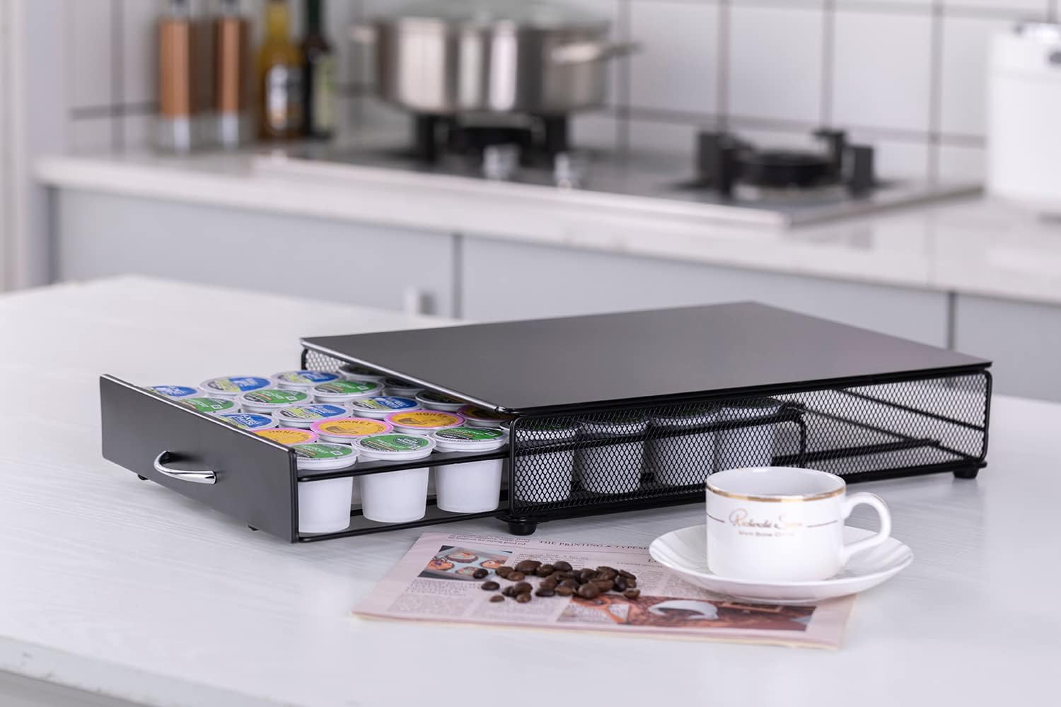 - SPACE SAVING - Place your single-serve coffee machine on top of this coffee pod drawer to save valuable space on your countertop. Now you can keep your beverages close to your keurig coffee maker without taking up extra space.