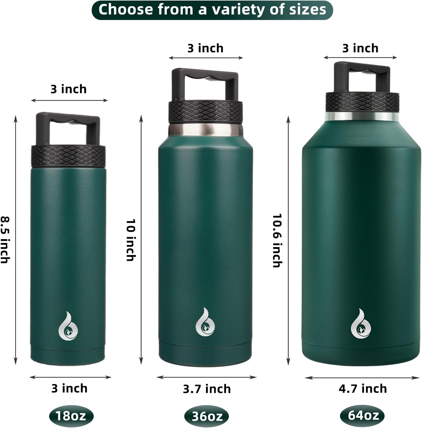 BJPKPK Half Gallon Water Bottle Insulated, Dishwasher Safe 64 oz Water Bottle with Handle, Leakproof BPA Free Water Jug, Large Stainless Steel Thermos for Sports, Army Green