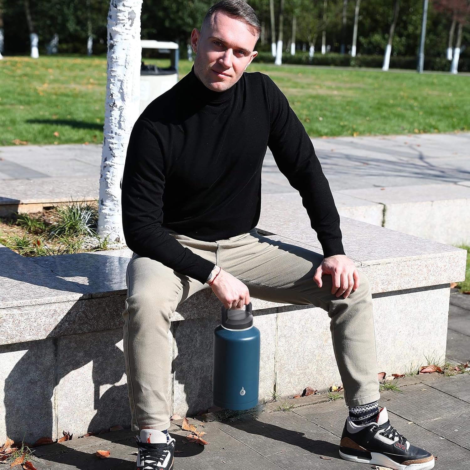 - INSULATED WATER BOTTLE: BJPKPK half gallon water bottle use double-walled vacuum insulation technology to keep your water cold for up to 24 hours, or hot for up to 12 hours, make sure you enjoy your favorite beverages at the most suitable temperature all day