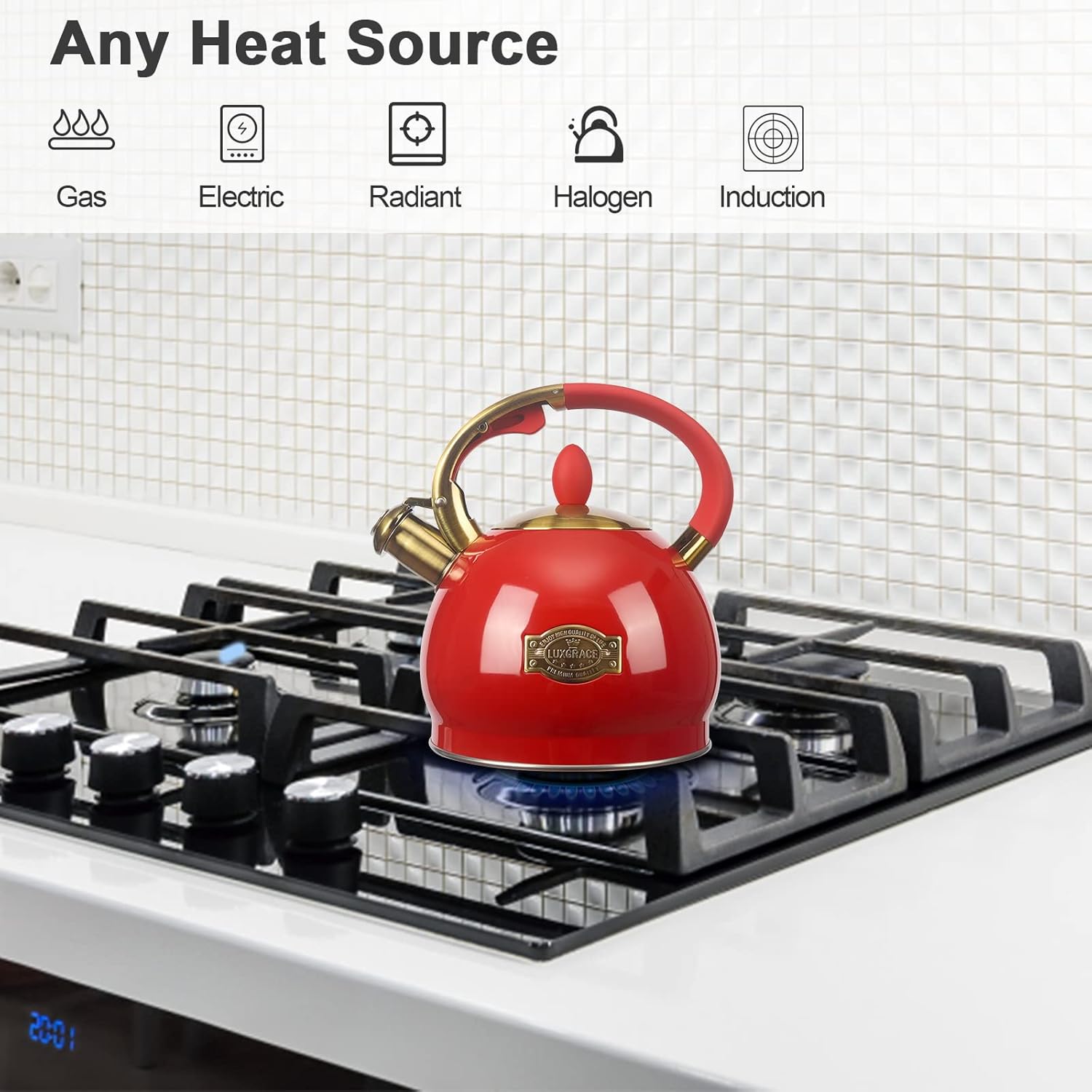 - Perfect Whistling Sound of TeaPot: This tea kettle for stovetop has a tight-fitting lid keeps steam in the hot tea kettle for rapid heating, and realse pleasant whistles sound when water reaches a boil, Loud enough to alarm you when you busy in the next room.
