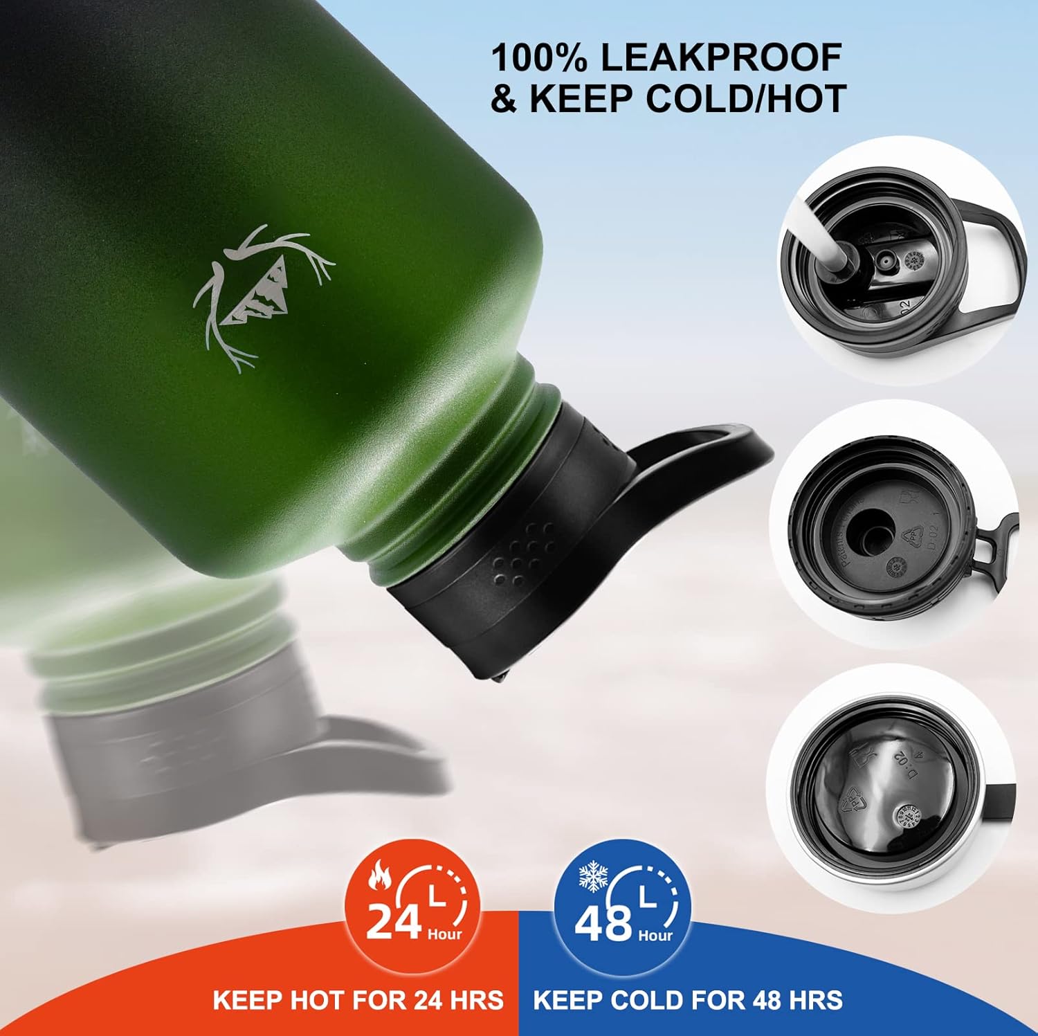 - 【Triple-Layer Vacuum Insulation】 – This insulated water bottle is engineered with triple-wall, vacuum-sealed insulation and made from premium 18/8 food-grade stainless steel. This advanced design locks in temperature, keeping drinks ice-cold for up to 48 hours or steaming hot for up to 24 hours. The no-sweat exterior prevents condensation and protects your hands from heat or frost, making it reliable for outdoor sports, travel, camping, and daily hydration