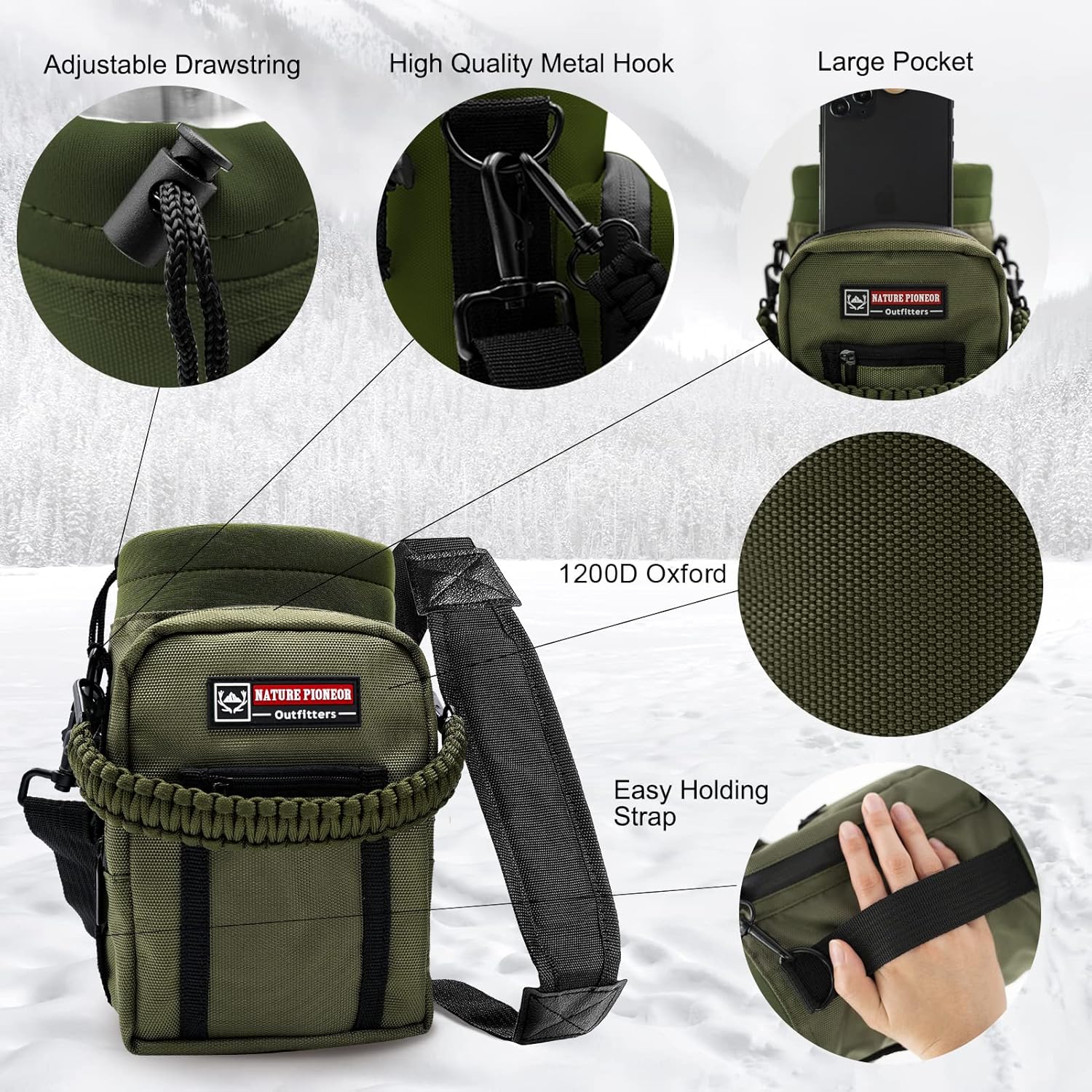 - 【Portable Water Bottle Holder】 – To make carrying easier, this water bottle comes with a handmade paracord handle and adjustable shoulder strap for hands-free convenience. The holder includes a zippered storage pocket for small items like keys, cards, or snacks, and a side hook for accessories. Whether you’re going on long hikes, outdoor adventures, or traveling, this bottle + carrier set offers both functionality and style