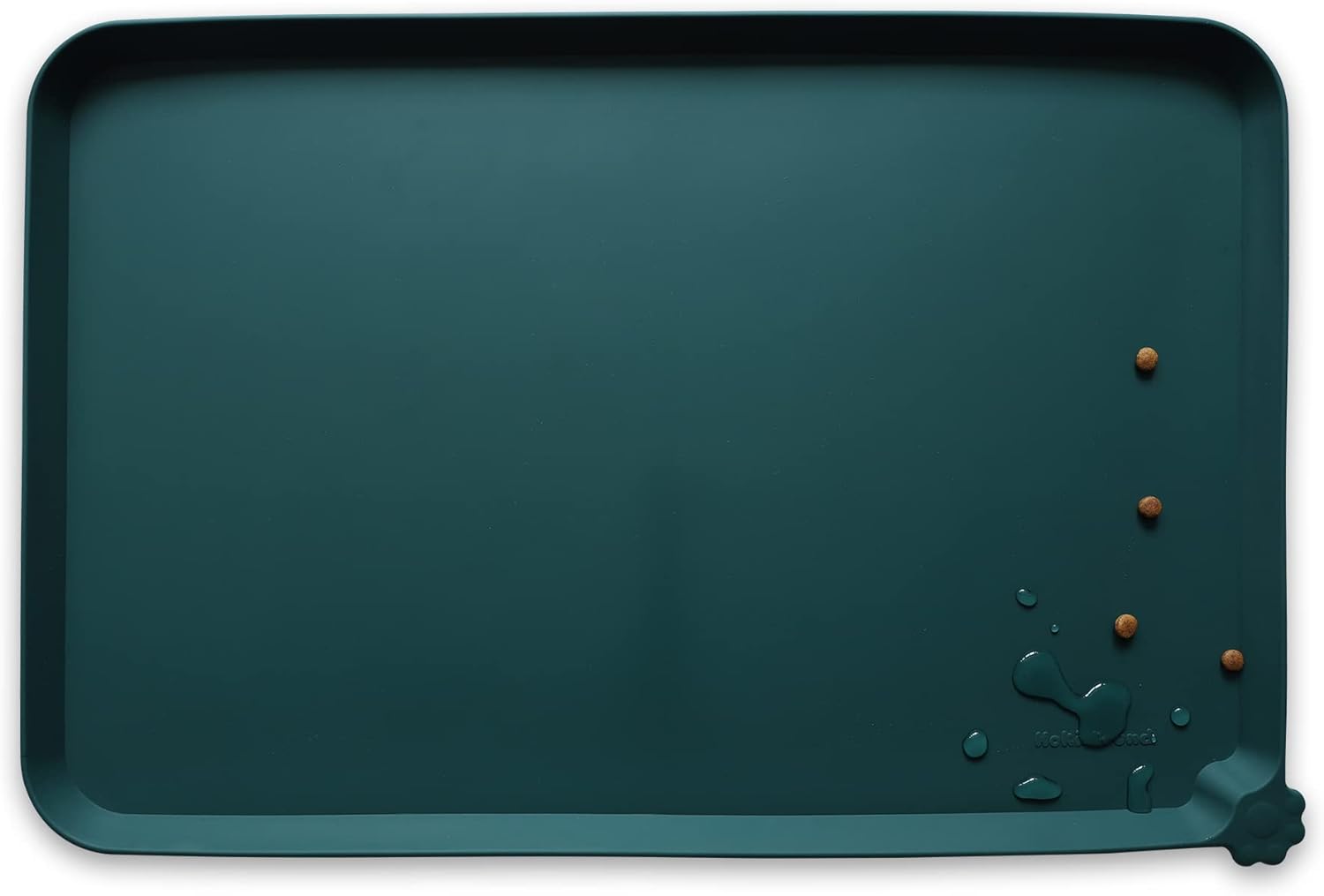 Hoki Found X-Large Silicone Non Slip Pet Food Mats - Tray for Dogs, Cats - Waterproof Feeding Mat - Dark Cedar