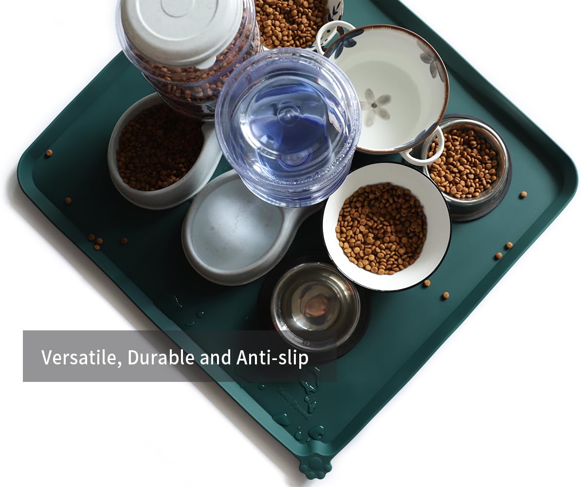 - Extra High raised outer lip prevents food, water and treats from spilling onto your clean floors! Please refer to measurements for size.No more messy spills on floor again.