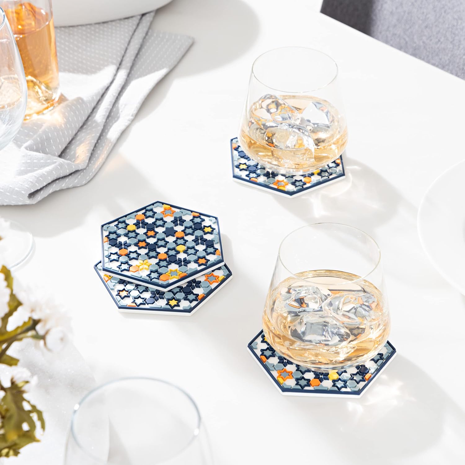 Coasters for Drinks – Set of 4 Coasters, Silicone, Protect Against Water Marks or Damage - Fit All Cups, 3.5" Inch Size Fits, Colored Coasters (Stars of Mars)