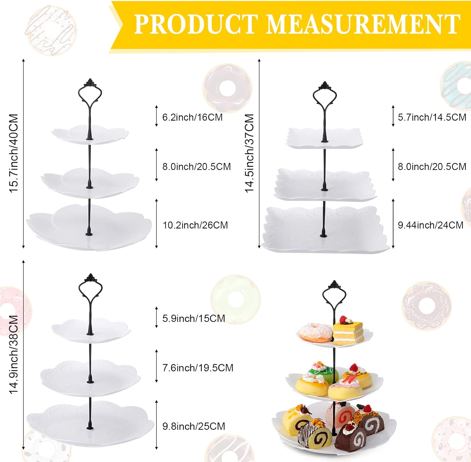 - Satisfy Your Needs: the package contains 6 pieces of 3 tiers serving tray decors, they are designed in 3 different shapes, the sufficient quantity is enough to satisfy your daily use and change, they can show your carefully prepared dessert snacks and cakes