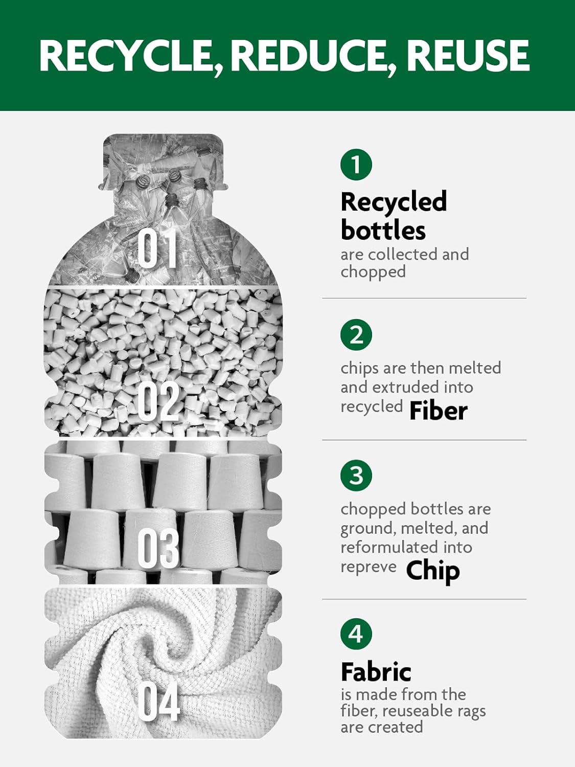 - [Alternative to Paper Towels] Designed for durability, the cloths are washable and reusable up to 50 times. The sturdy 175gsm microfiber will be a highly effective cleaning results