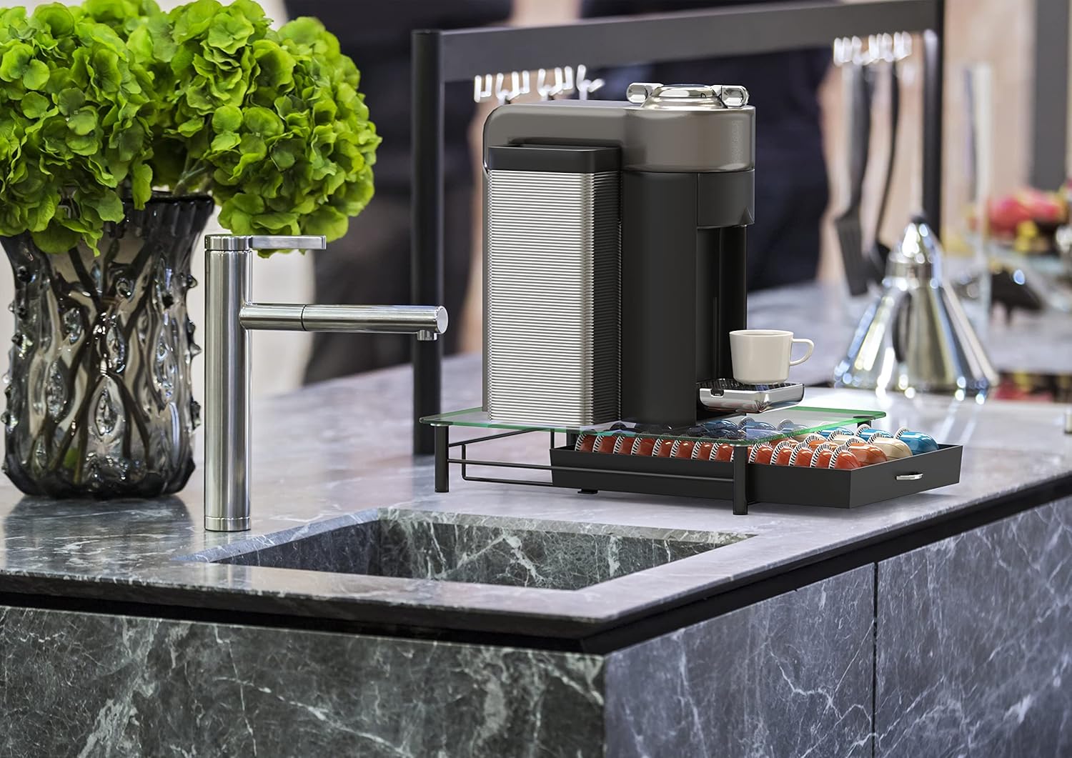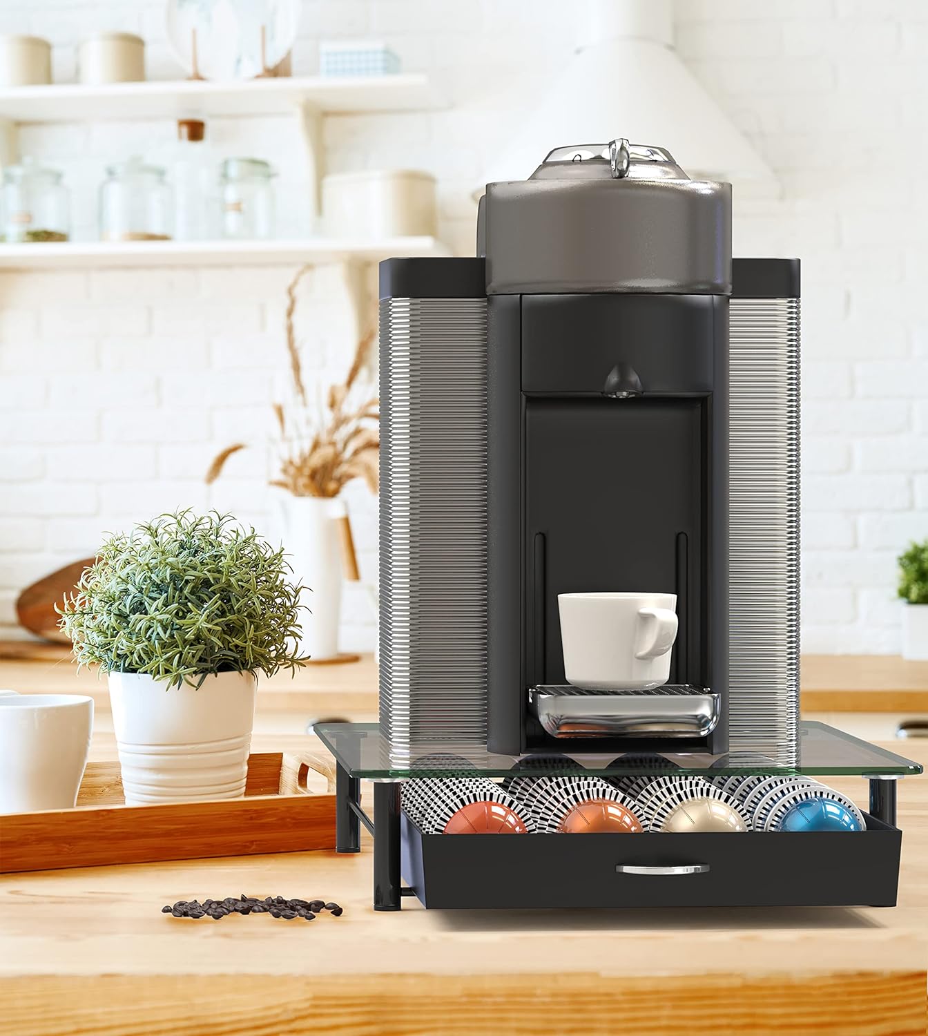 - [ Sliding Drawer Design ] The sliding drawer allows easy access to your pods, making it convenient to select and use your preferred coffee capsules.