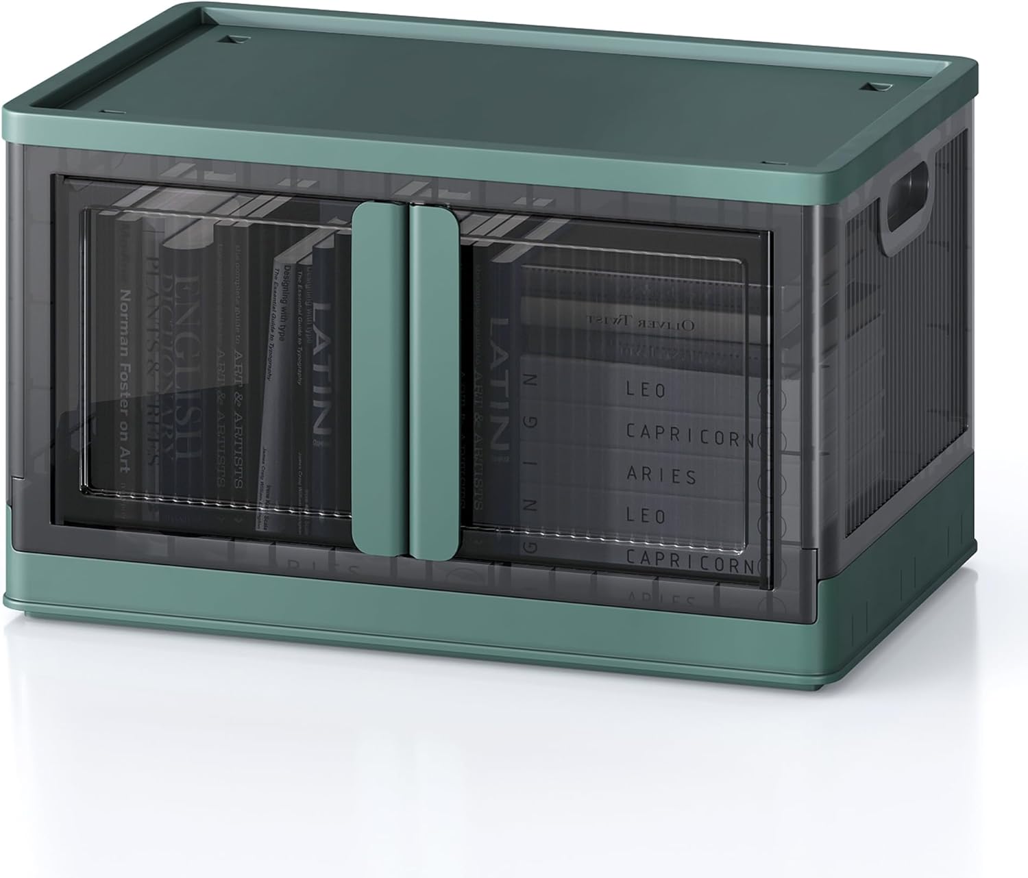 19Gal Collapsible Storage Bins with Lids & Wheels - 1 Pack Stackable with Doors, Heavy-Duty Plastic Containers for Home/Office, Green