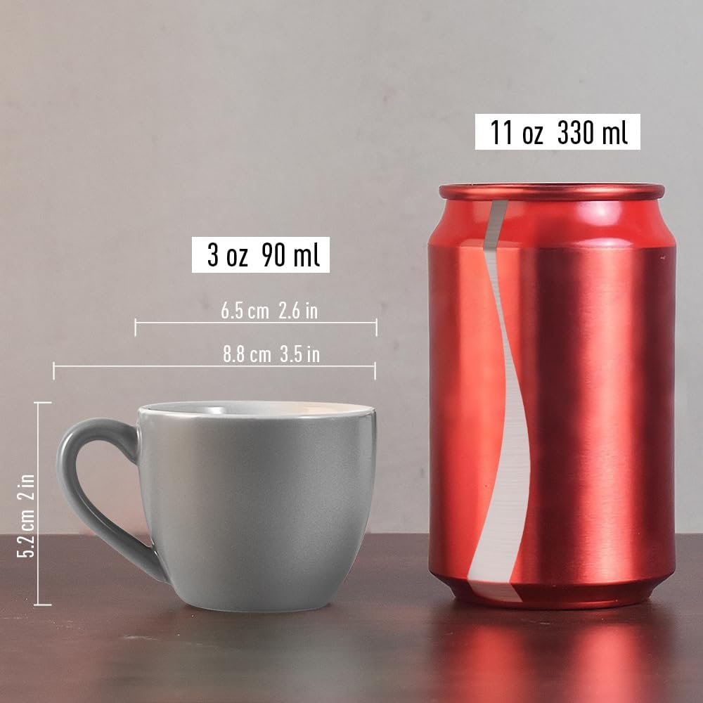 homEdge Mini Procelain Espresso Cup, 3 Ounces / 90 ml Tiny Coffee Mugs Demitasse for Espresso, Tea- Set of 6, Dark Gray