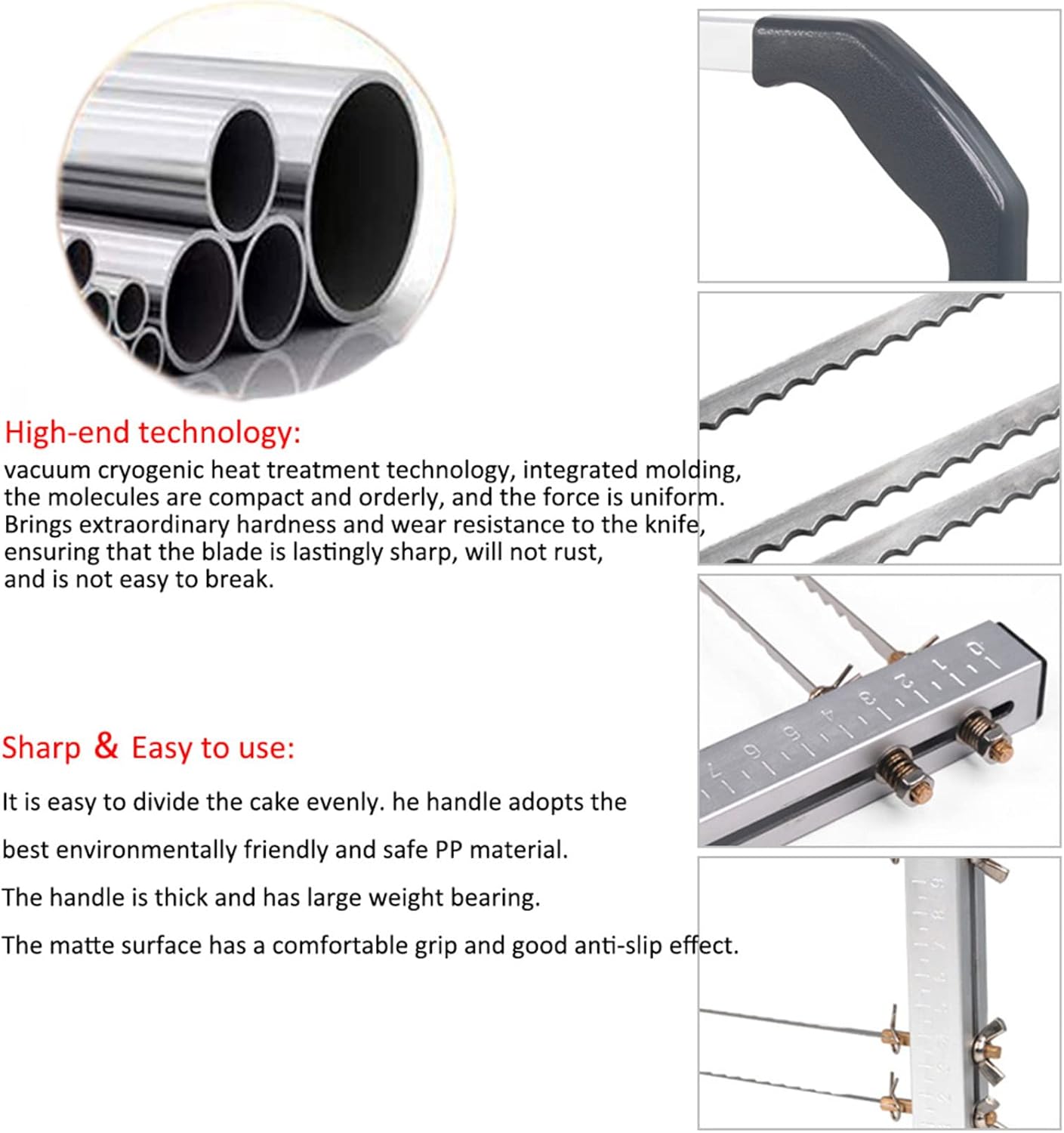 - 【Precise Size Adjustment & Removed】 The size of the slice can be adjusted by rotating the upper screw. The adjustable size range is 1-9CM, and the size can be adjusted according to the thickness of the cake to be cut. 1-2 blades can be removed according to needs to meet different cake cutting needs