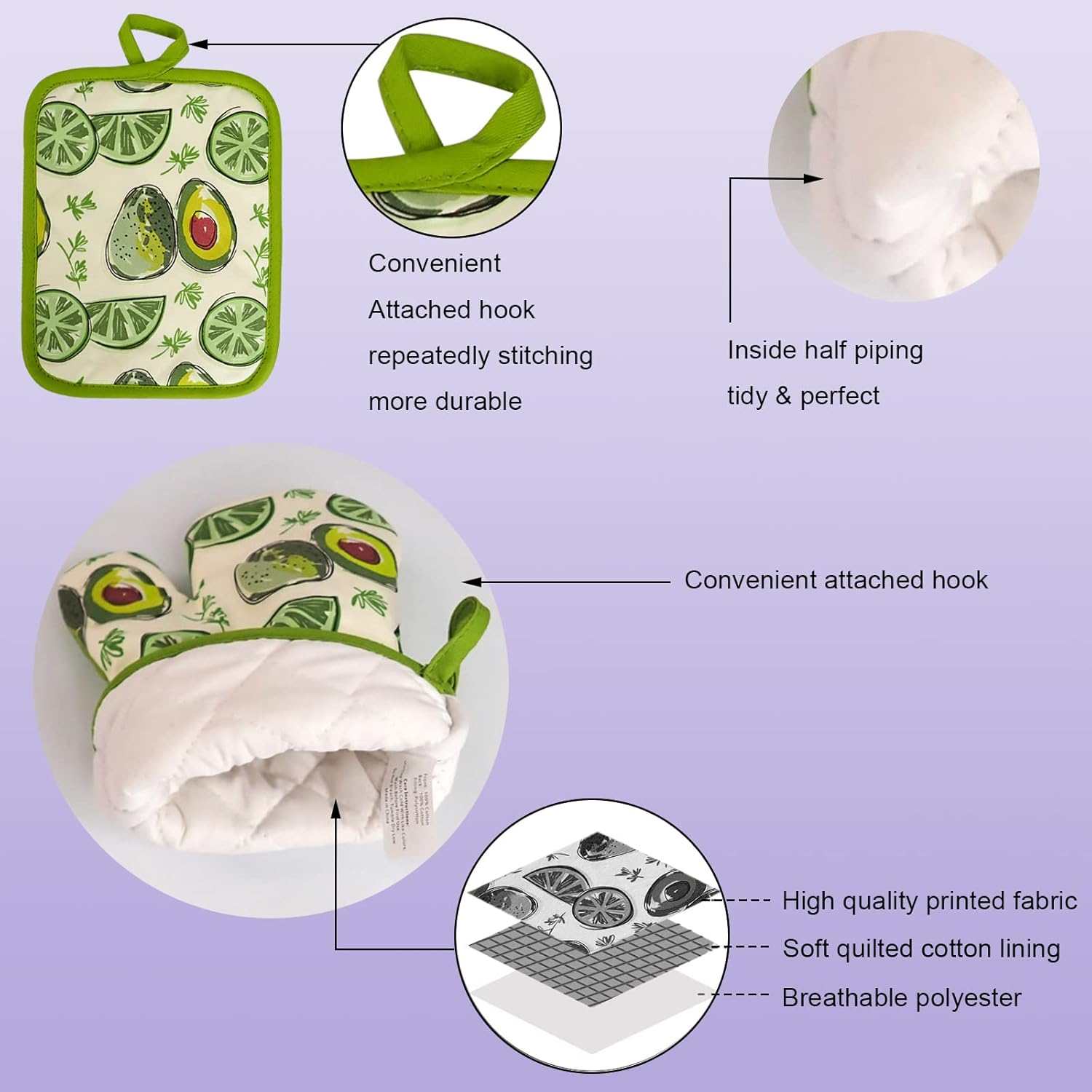 Oven Mitts and Potholders Dish Towles Set 100% Cotton for Perfect for Gifting, Baking and Everyday Cooking Durable Heat Resistant for Kitchen (5-Piece Lemon Avocado)