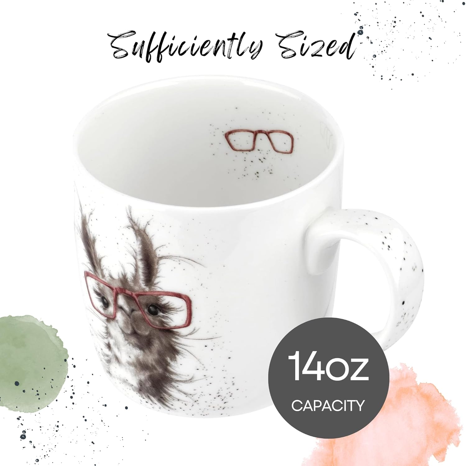 Royal Worcester Wrendale Designs 14 oz Mug, No Probllama - Fine Bone China with Llama Motif - Woodland Themed Tea Mug for Cozy Cottagecore Homes - Safe Ceramic Drinkware for Daily Use