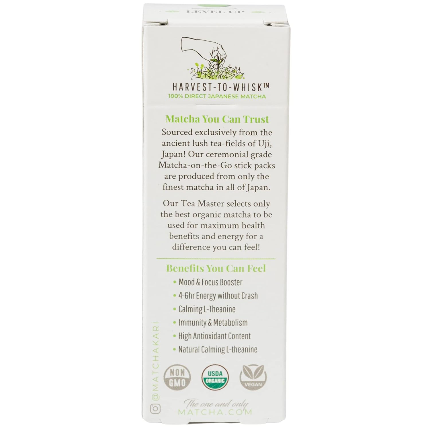 - USDA Organic Ceremonial Grade - This Matcha Green Tea Powder is 100% USDA Organic, all-natural, nothing added (naturally gluten-free and vegan), and comes in the convenience of individual packaging. This premium matcha is exclusively grown in the misty hills of Uji, Japan. The Matcha on the Go Stick packs let you take it wherever you go. Includes 6 individual 1.5 gram matcha sticks