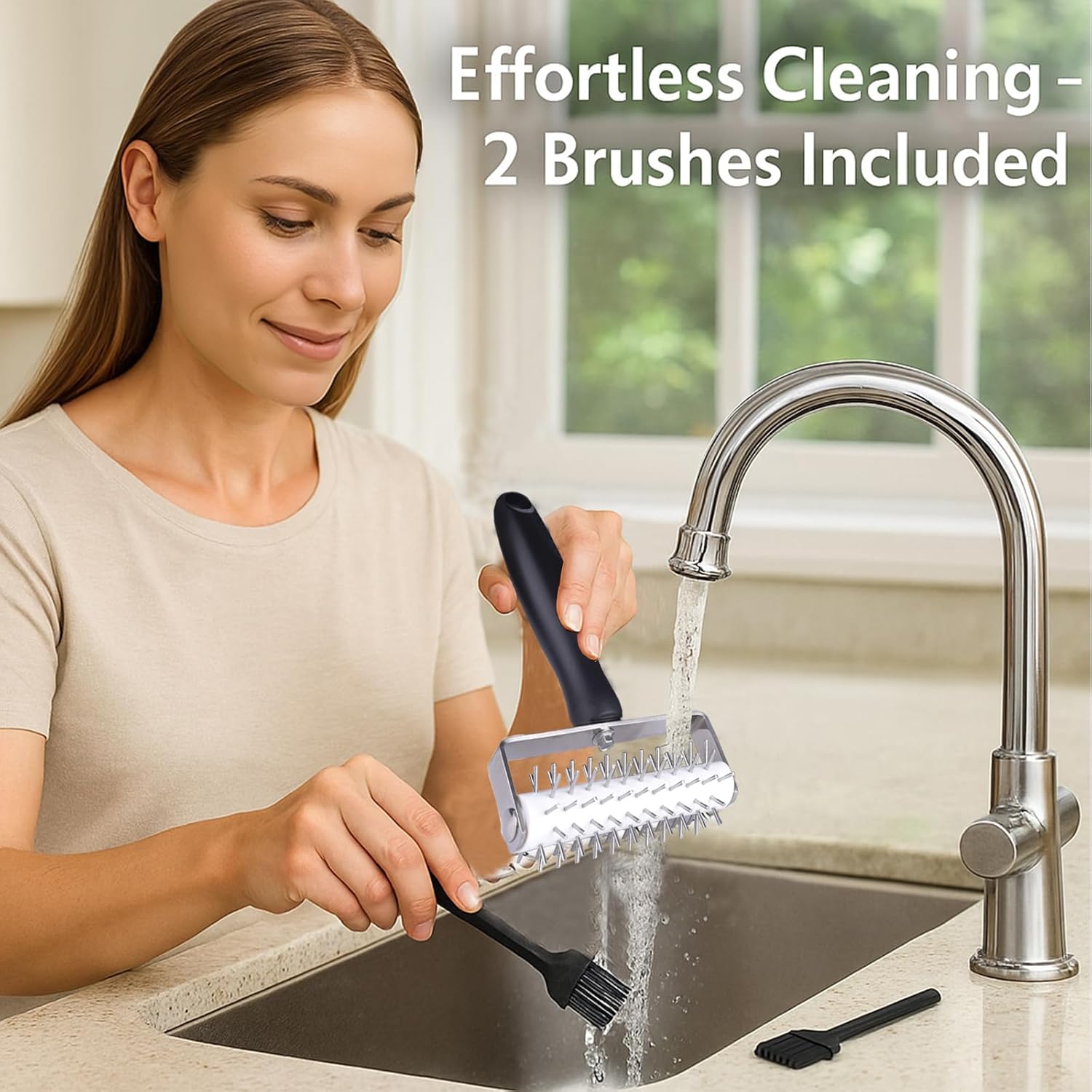 - Premium Material: Our dough docker roller with a solid plastic handle. Pins are made of Food Grade stainless steel material. Sturdy and durable dough docker will last longer
