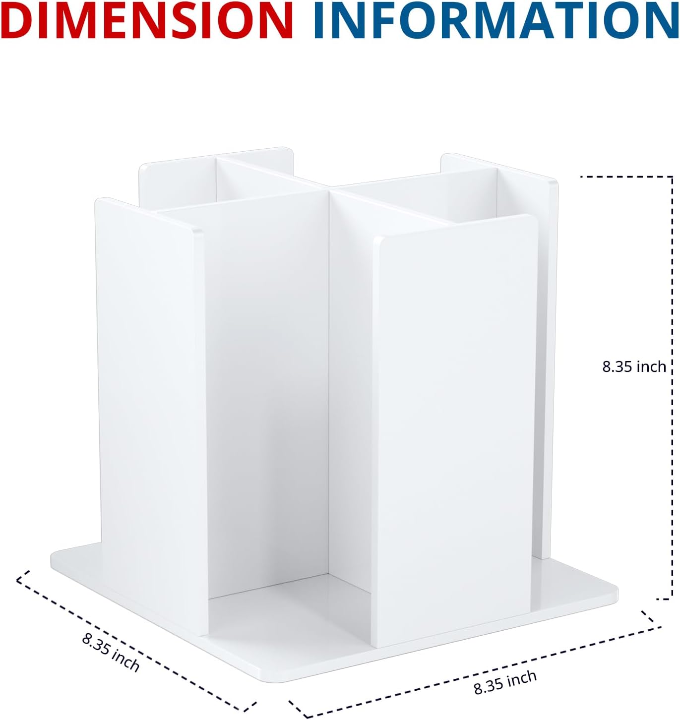 Cup and Lid Holder, 4 Compartment, Square | Rotating Coffee Cup Dispenser Lid Carousel for Restaurant, Buffet, Coffee Station, Bar, Countertop, White Acrylic