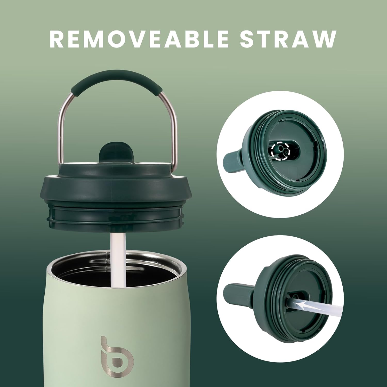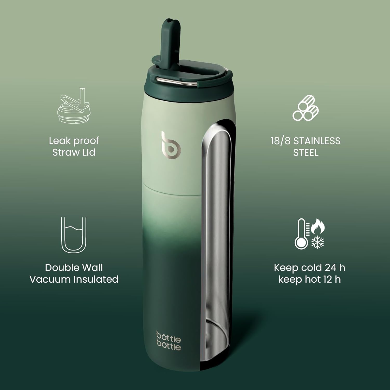 BOTTLE BOTTLE Stainless Steel Water Bottle with Straw and Lid, 32 oz Vacuum Insulated Flask Stay Cold for 24 Hrs Hot for 12 Hrs Leak-Proof Wide Mouth Sports Water Bottles for Men green