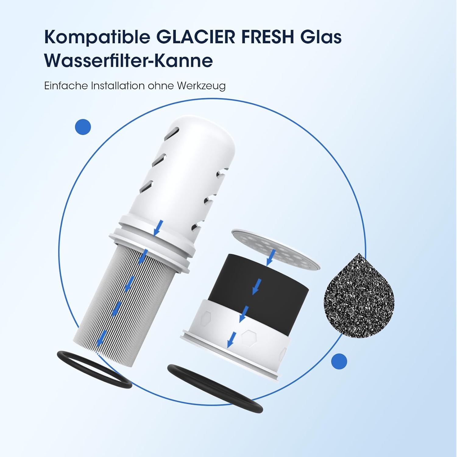 - Wide compatibility: Glacier Fresh pitcher filter compatible with GLACIRE FRESH Glass 7&10 Cup water pitcher and all LS Home pitchers and dispenser systems, including Ls home Dispenser 18 Cup/Glass Pitcher 7 Cup/Plastic Pitcher 10 Cup/Plastic Pitcher 7 Cup. Follow the instructions and install in minutes with no extra tools required. We can ensure a perfect fit and effectively solve your water needs.