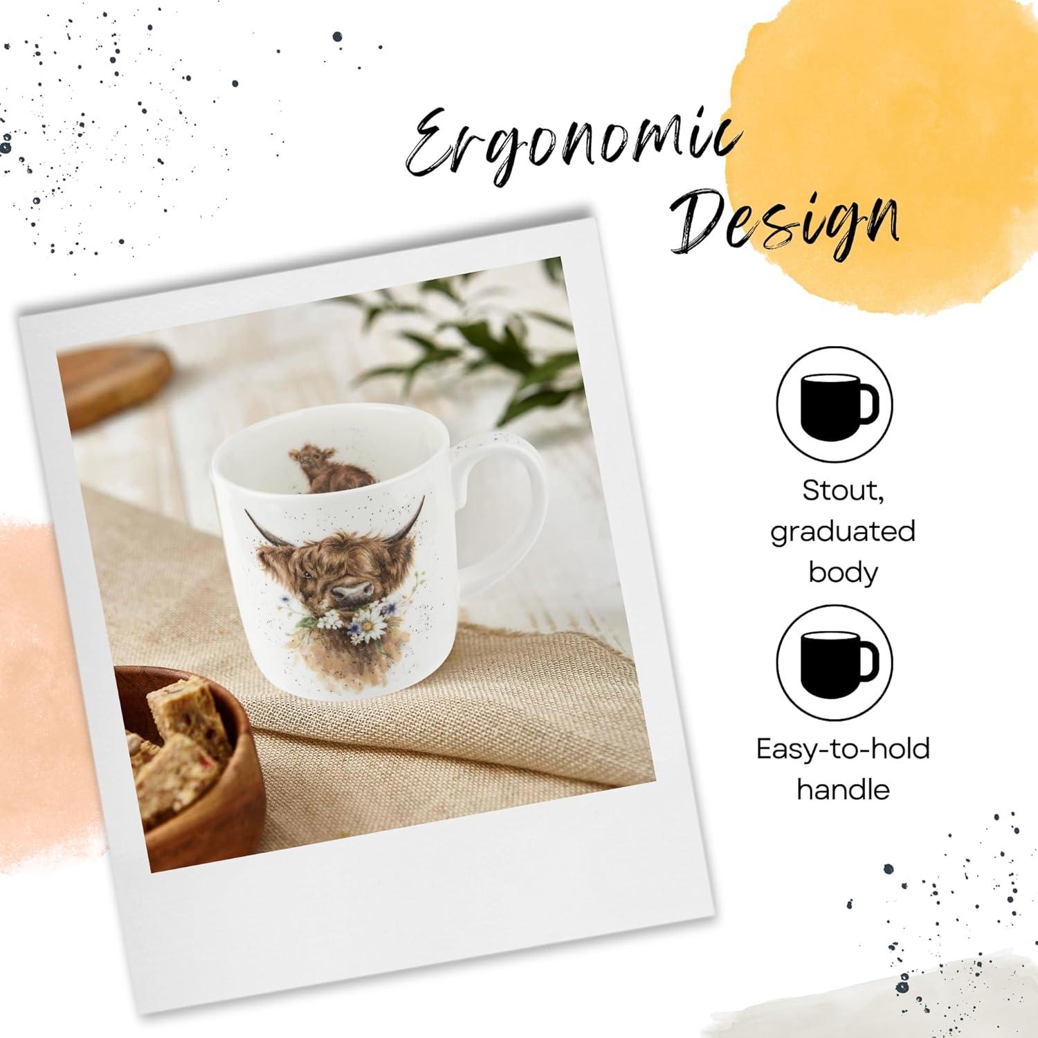 - Soft Countryside Charm: With muted tones and a tender cow illustration, this countryside mug blends beautifully with cottage decor and adds character to your drinkware shelf.