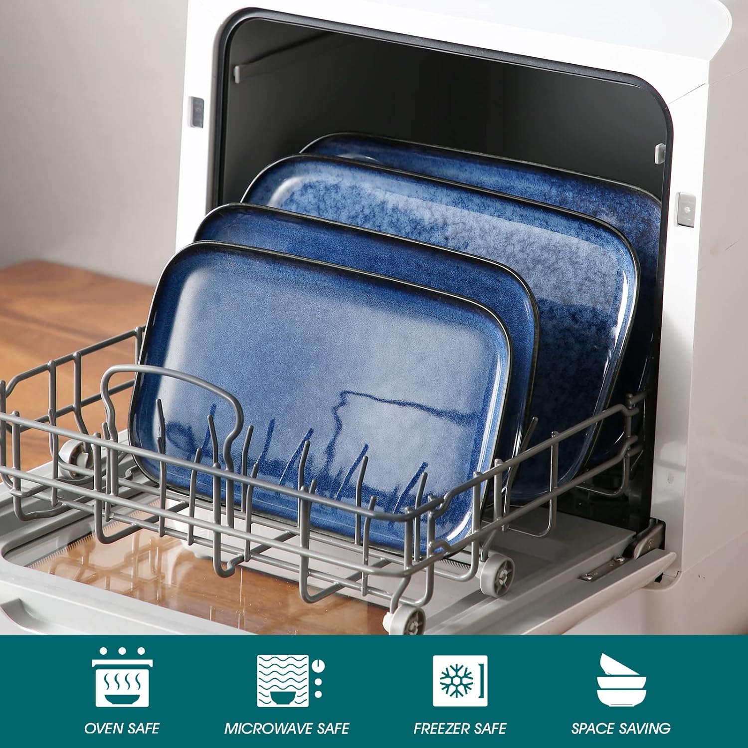 vancasso Stern Serving Platters Set of 3, 15/13/ 11 Inches Rectangular Serving Plates, Blue Serving Trays for Entertaining, Party