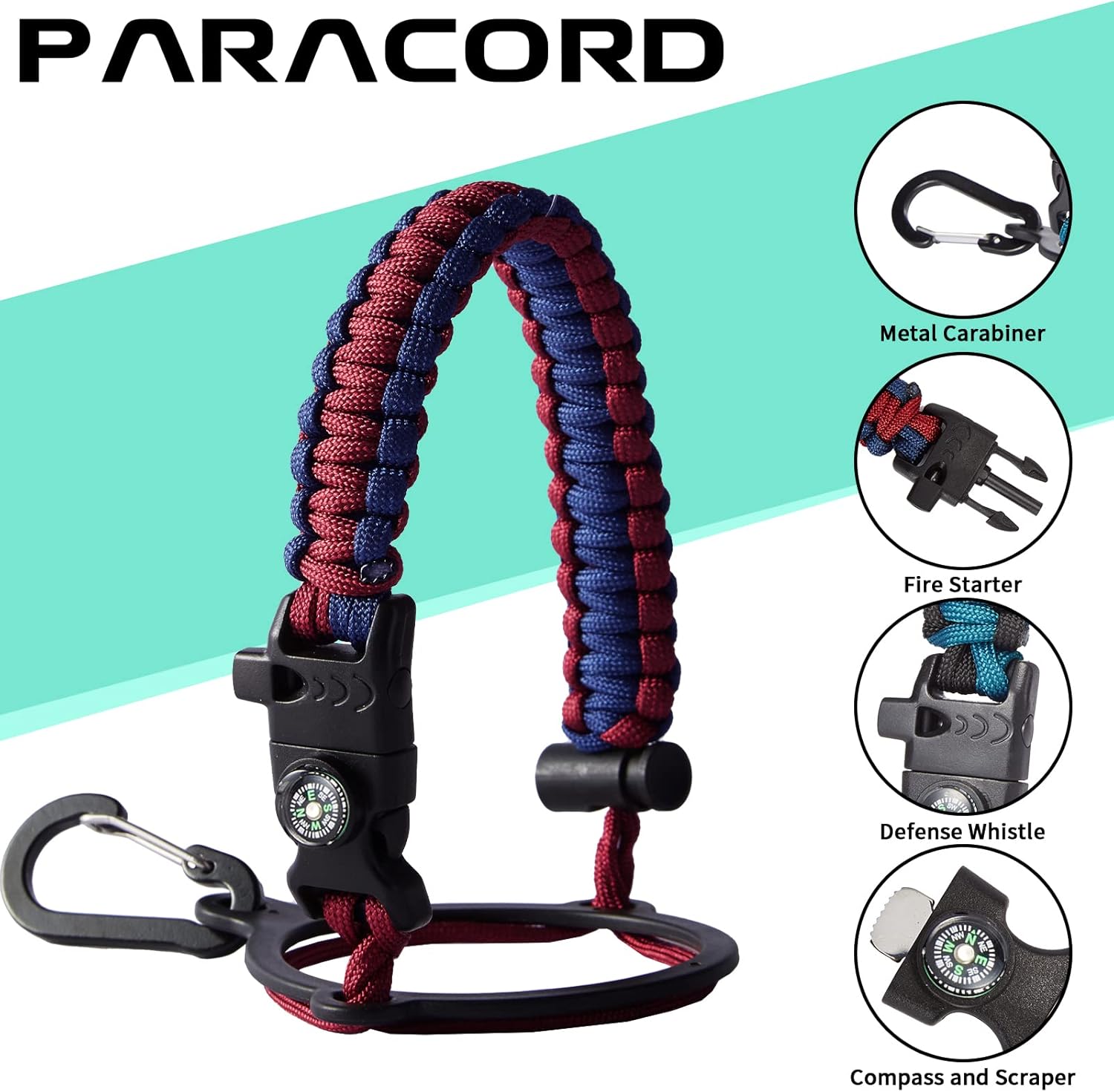 - UNIQUE PARACORD—Perfect Accessories: bright color paracord matches the flask water bottle to give you a youthful vibe while adding a personal style. It comes with a compass, safety loop, metal carabiner, flint, igniter, and whistle to become your survival tool for your wild adventures