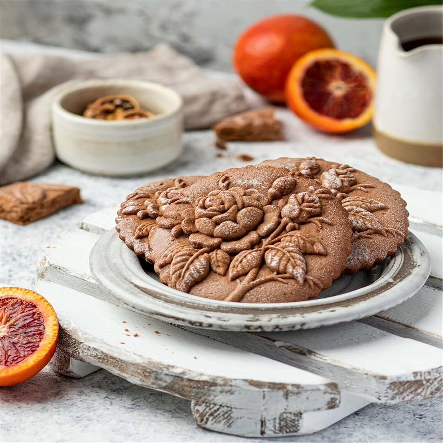 Wooden Cookie Biscuit Mold, 3D Baking Mold, Embossing Craft Decorating Baking Tool, Suitable for Halloween Thanksgiving Christmas Kitchen DIY (Rose 10 * 10 * 2)