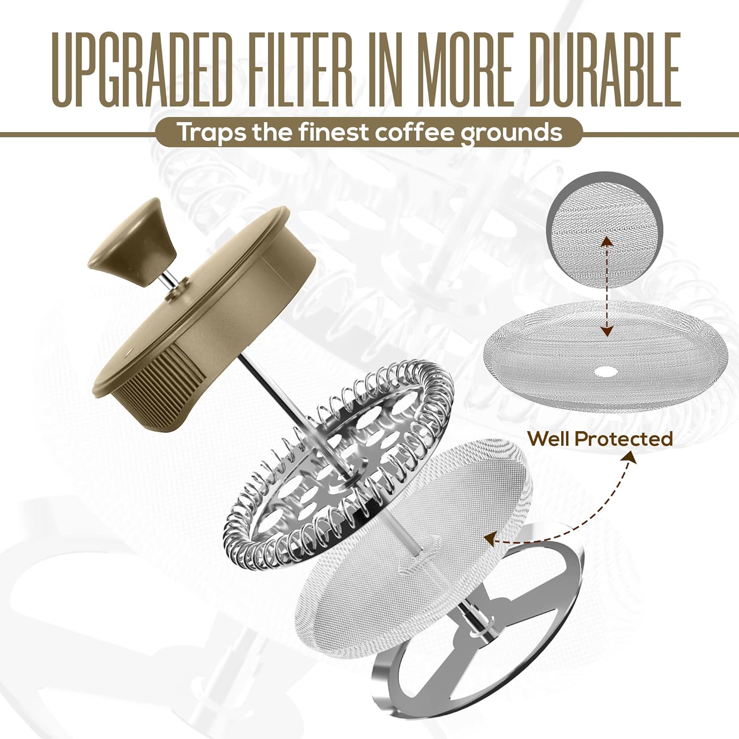 Utopia Kitchen 12 Ounce 0.35 Liter French Press Coffee Maker, Tea Maker, Travel Coffee Presses, Heat Resistant Thickened Borosilicate Coffee Pot for Camping Travel Gifts, Gold Pack of 1