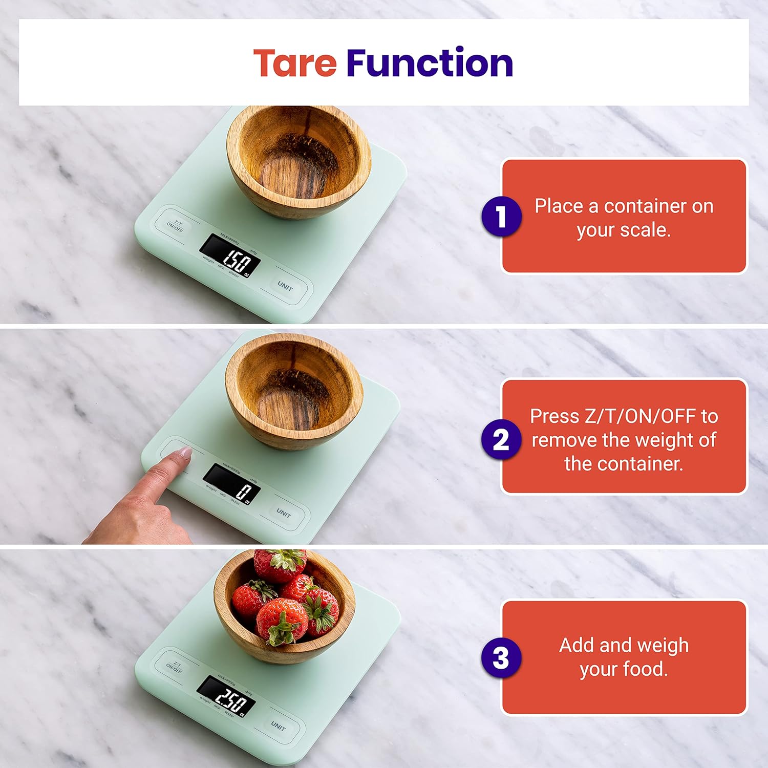 - Tare Function: Remove the weight of any container to get more precise results