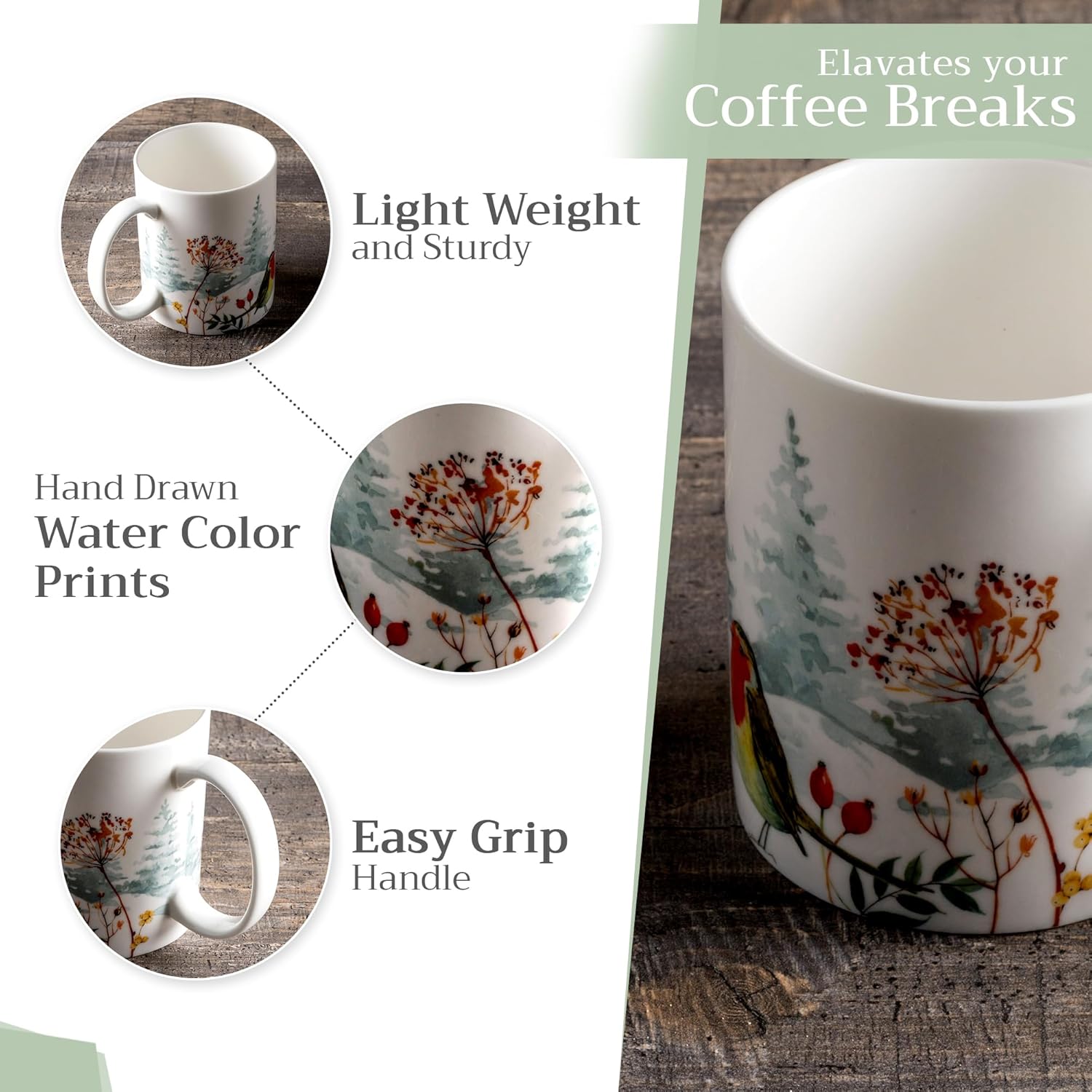 - Unique Design: Each mug features a watercolor-style print inspired by classic European motifs. The vibrant colors and artistic details add a stylish accent to your kitchen and make your coffee or tea moments extra special