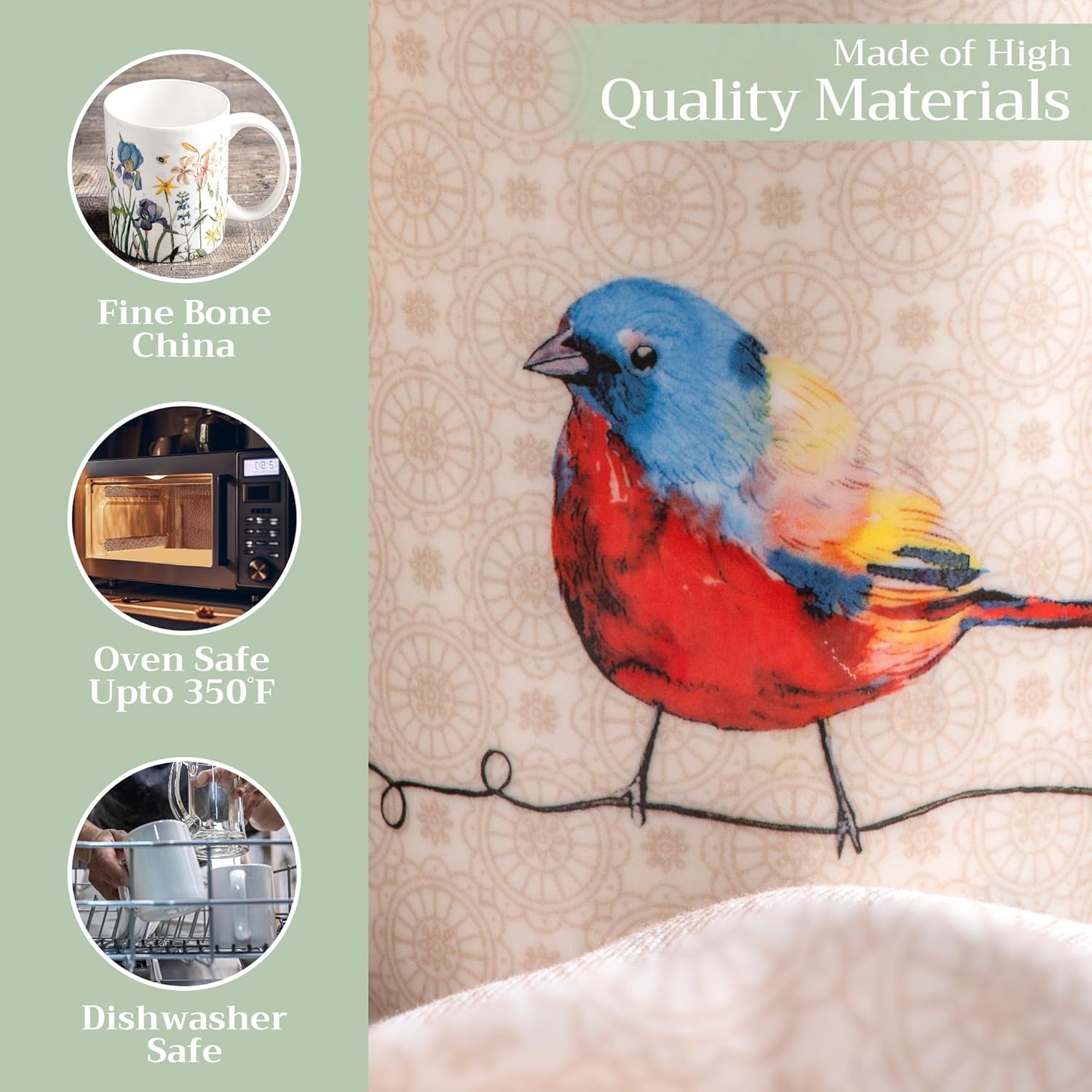 Maison d' Hermine Coffee Mug with Handles Fine Bone China Mugs Pack of Two Tea Cups for Hot Beverages Cappuccino Latte Home Restaurant Office Perfect for Gift (Birdies On Wire, 15 Ounce)