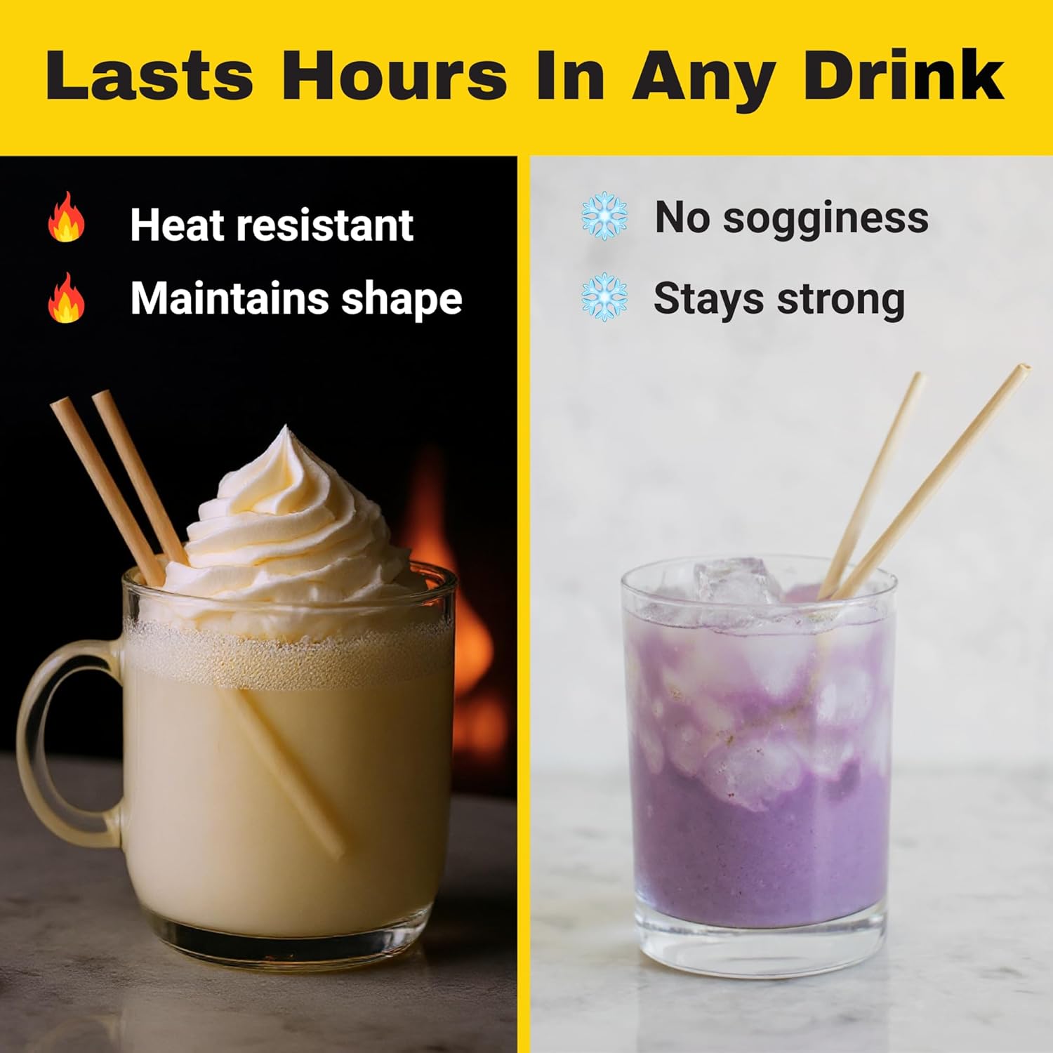 - ☕ WON'T MELT: Unlike plastic or bio-plastic stirrers, HAY! Stirrers maintain their structure and won't dissolve in your drink! Ensuring a reliable and enjoyable drinking experience with hot or cold drinks.