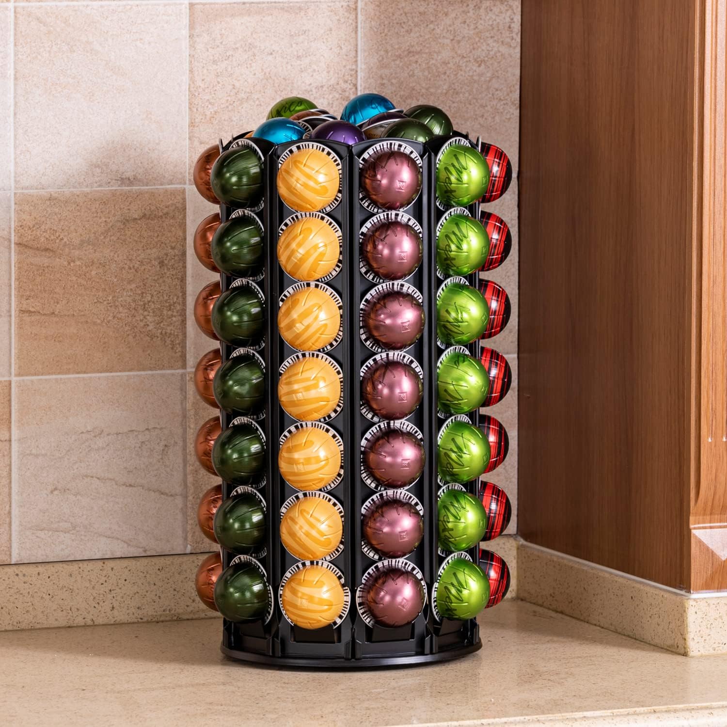 - 【360-Degree Rotation】Based on 360 degree rotation, it’s convience to get coffee capsules from each side of nespresso capsule holder. Non-slip mat bottom ensures that you can revolve the coffee pod stand freely without slipping.