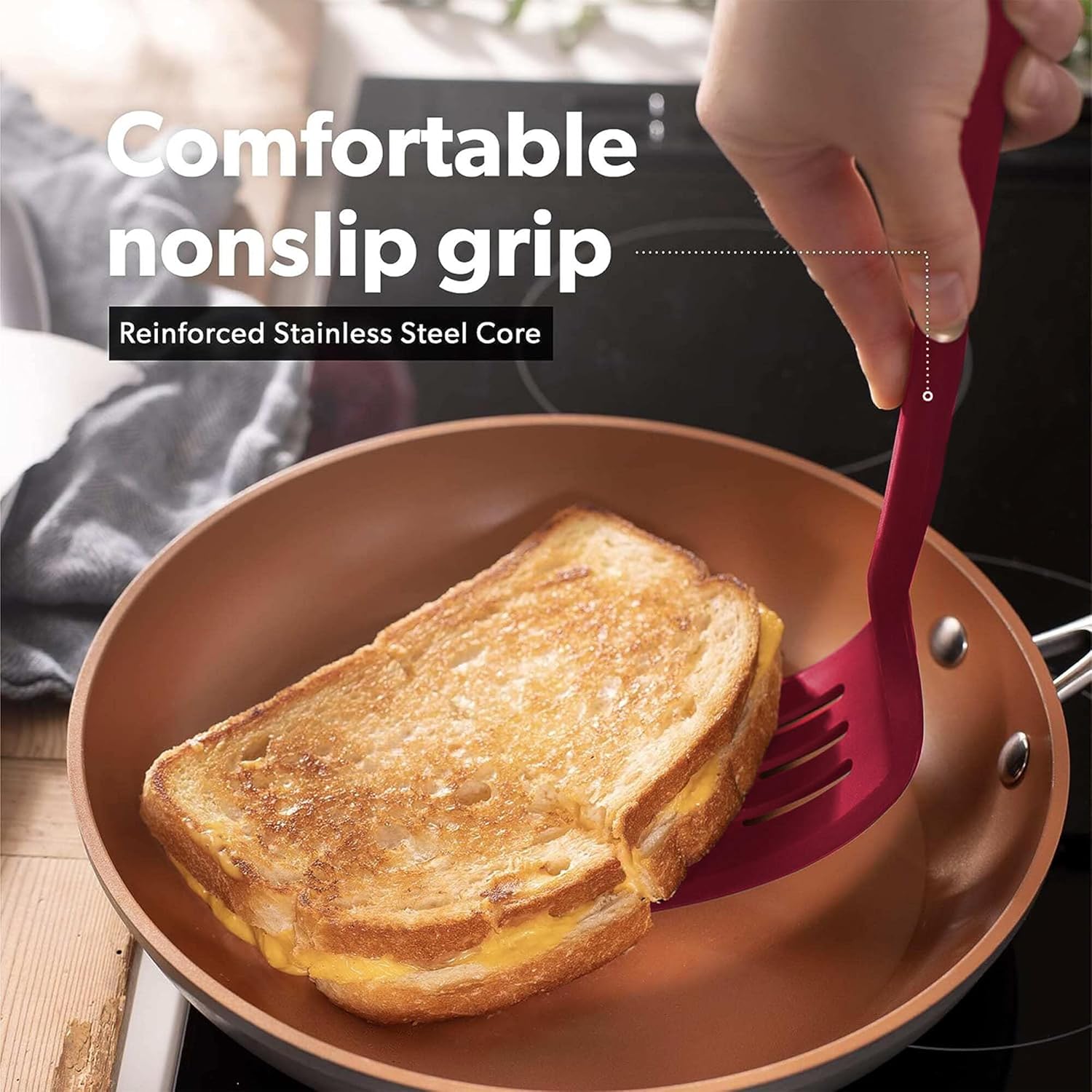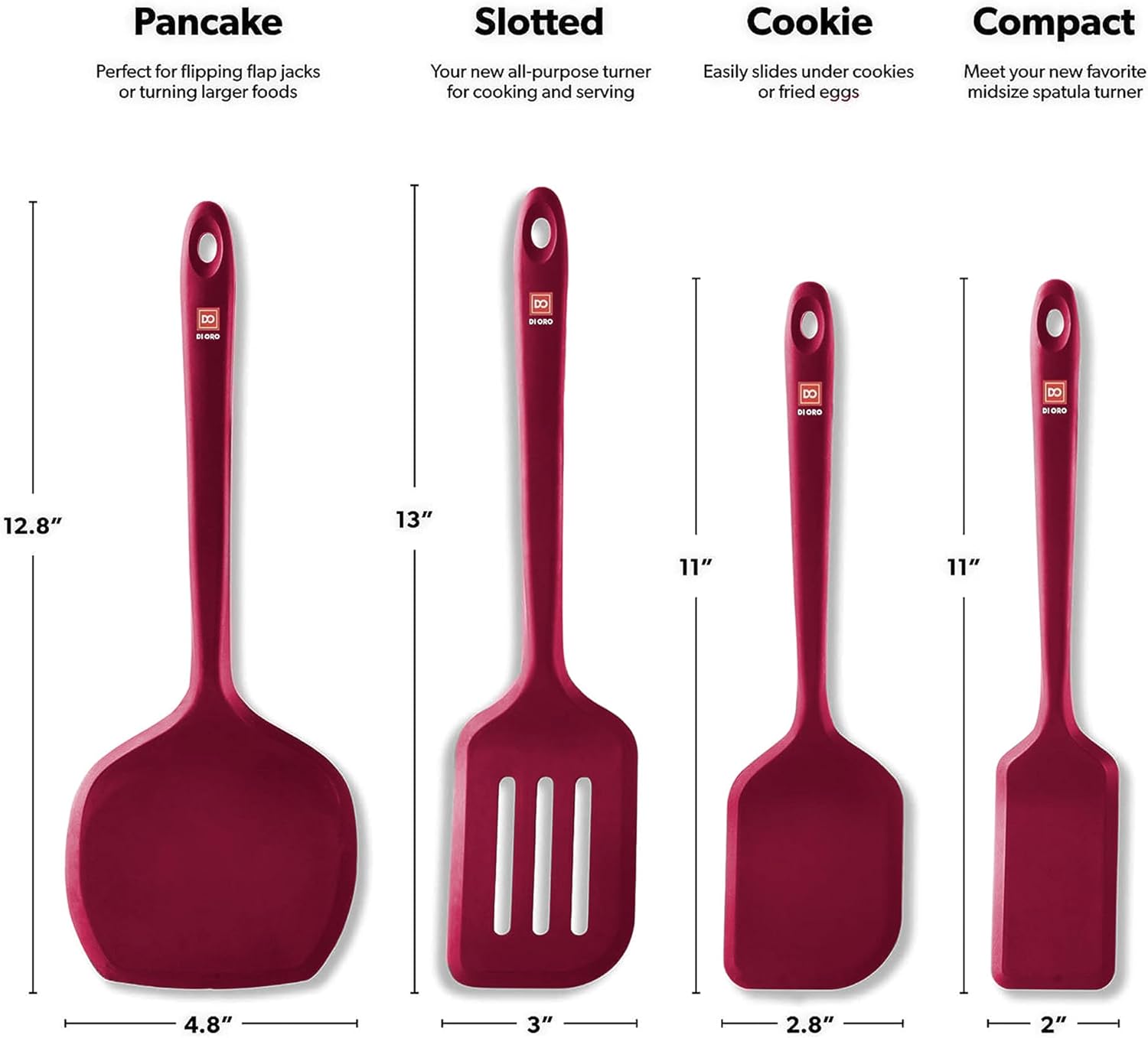 New DI ORO Seamless Series Moda 4-Piece Silicone Turner Spatula Set - 600°F Heat-Resistant Flexible Kitchen Spatulas for Nonstick Cookware - Flippers for Eggs & Pancakes - Utensils for Cooking (Red)