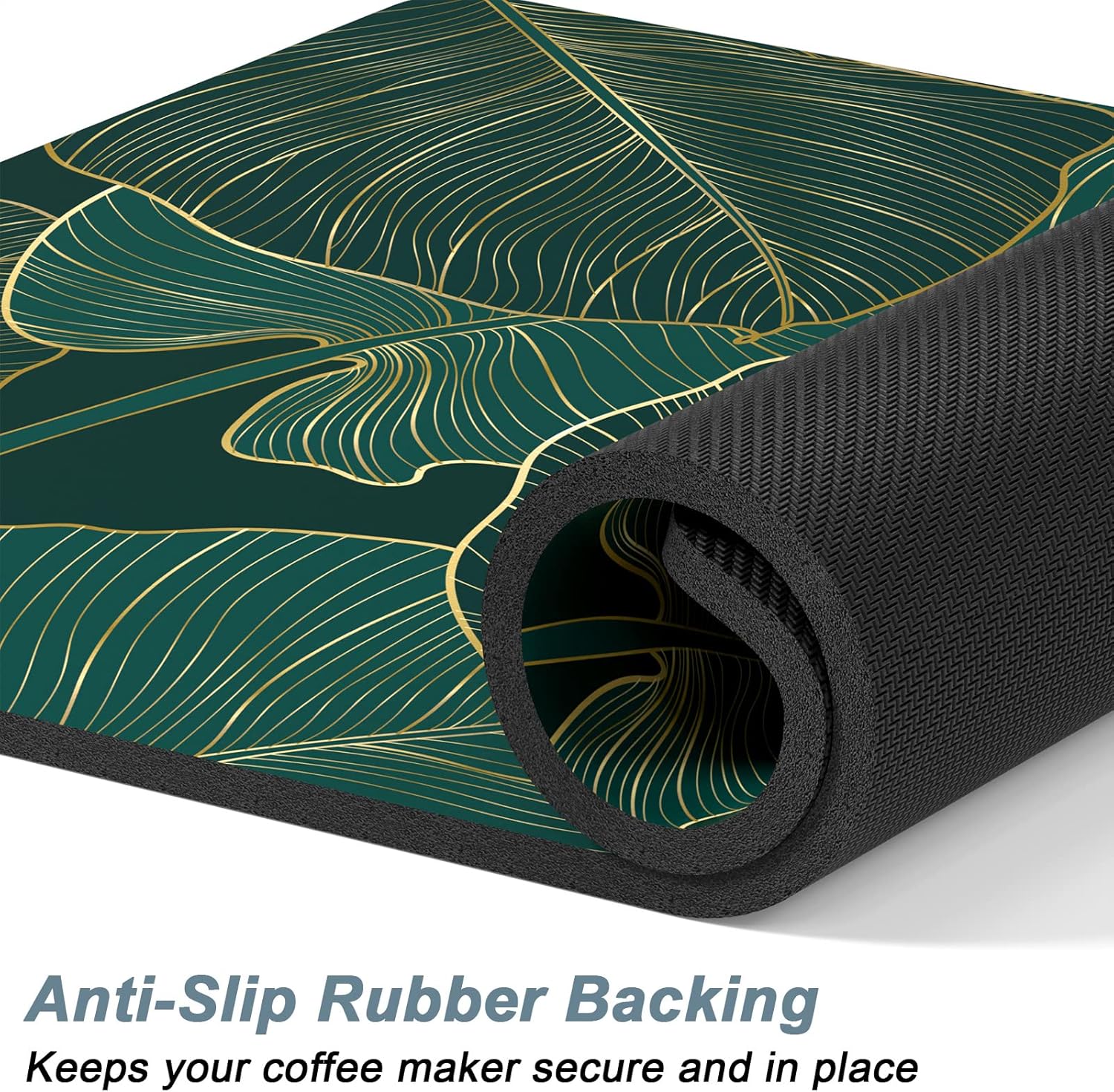 - Super Absorbent and Non-slip: Coffee bar decor mat is crafted from absorbent suede and anti-slip rubber. The surface is soft, heat-proofand and can quickly absorb liquid. The anti-slip rubber backing can firmly grip the floor without unwanted sliding