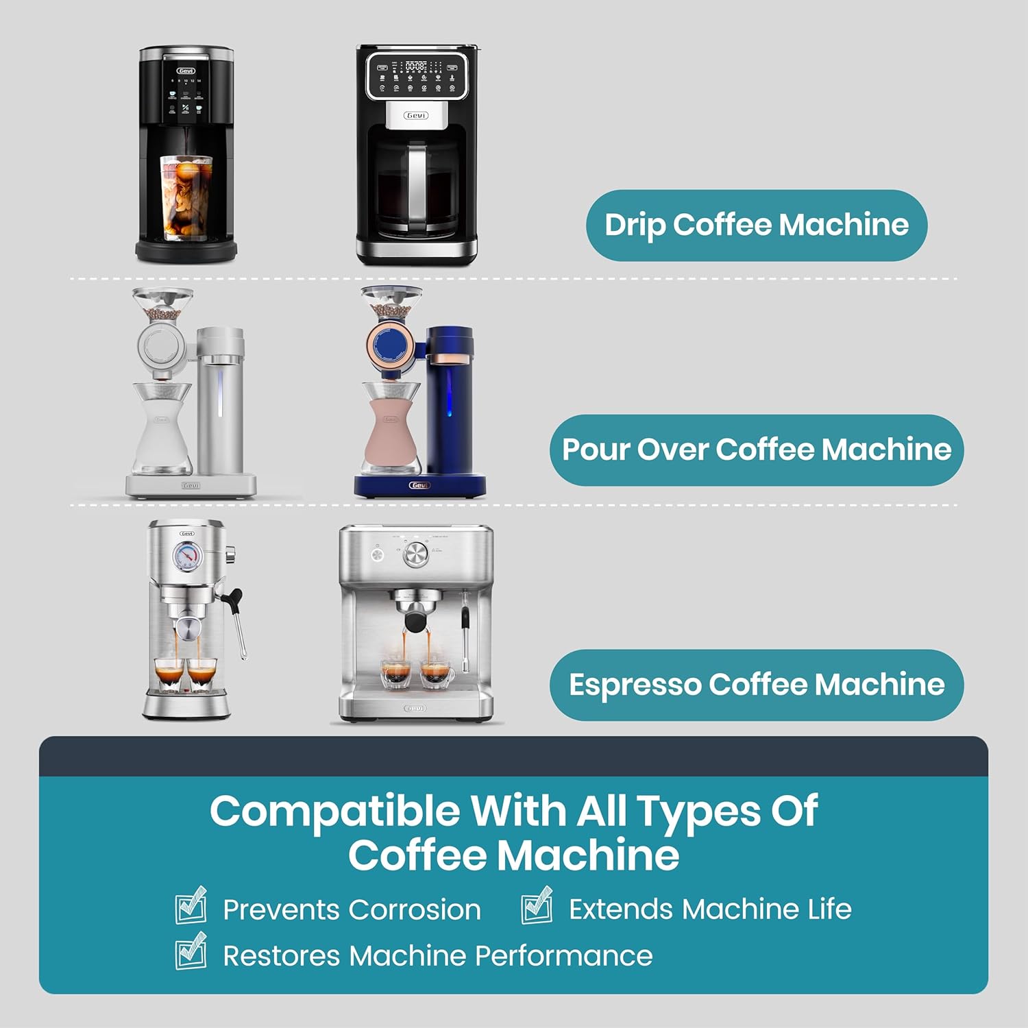 - 𝐏𝐨𝐰𝐞𝐫𝐟𝐮𝐥 𝐚𝐧𝐝 𝐔𝐧𝐢𝐯𝐞𝐫𝐬𝐚𝐥𝐥𝐲 𝐂𝐨𝐦𝐩𝐚𝐭𝐢𝐛𝐥𝐞:Gevi Machine Cleaner is specially designed for makers. Removing limescale and mineral buildup helps extend the lifespan of your espresso machine.
