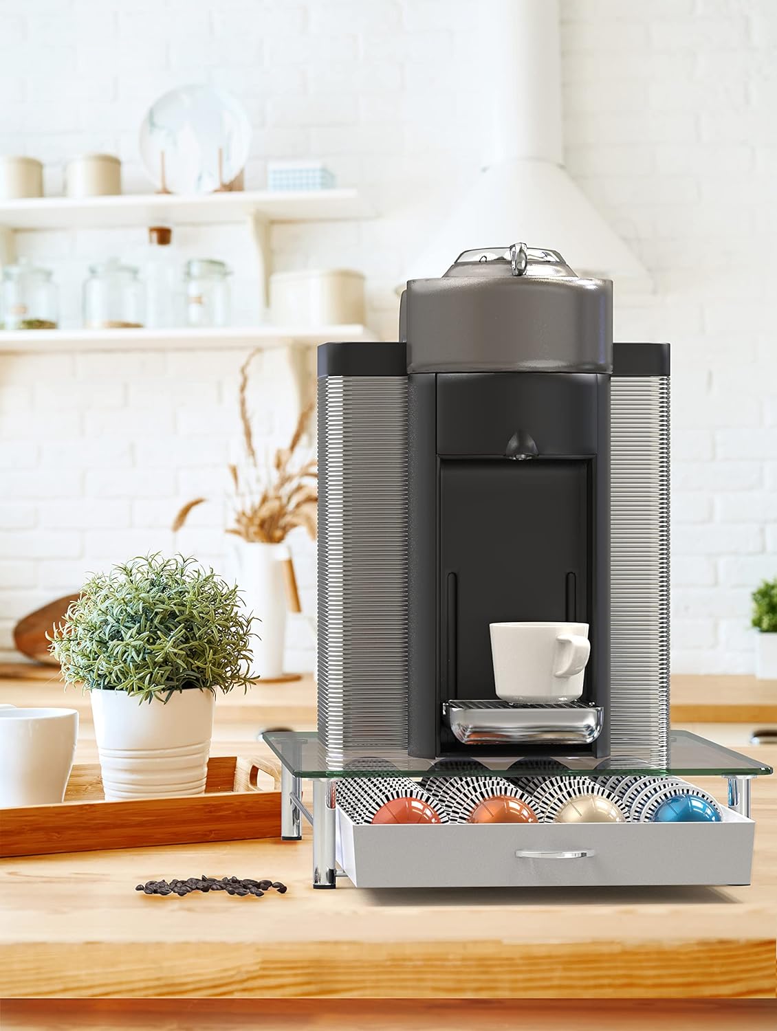 - [ Sliding Drawer Design ] The sliding drawer allows easy access to your pods, making it convenient to select and use your preferred coffee capsules.