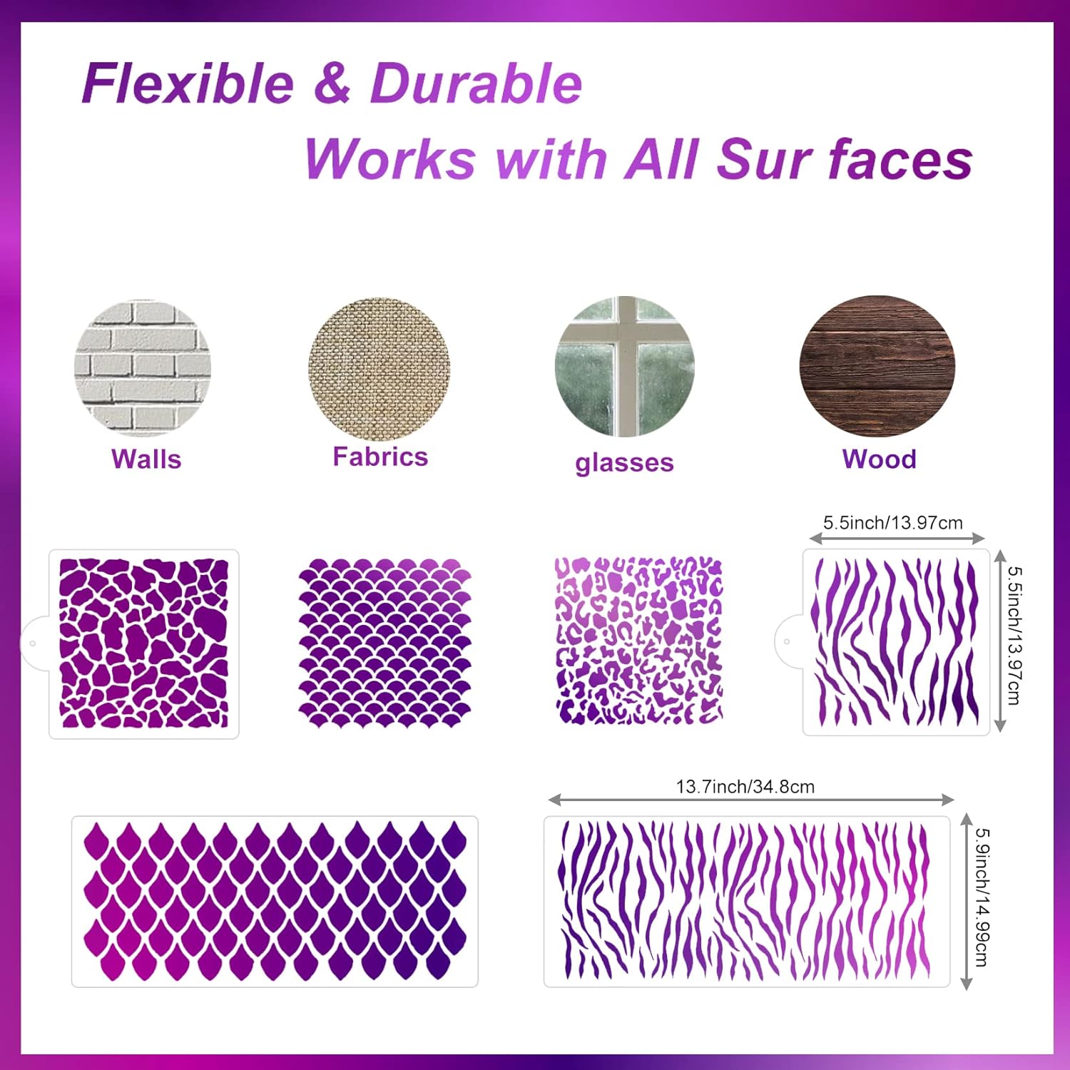 - Various shape: the stencils for cookies with different designs, such as fish mermaid scale stencil, leopard stencil, cheetah stencil, dragon scales stencil, snake skin stencil,cow print stencil, tiger stripe stencil, camo stencils, animal zebra stencil etc, meet cake supplies for baking biscuit and decorating needs, also can be used for bleaching shirts and face.