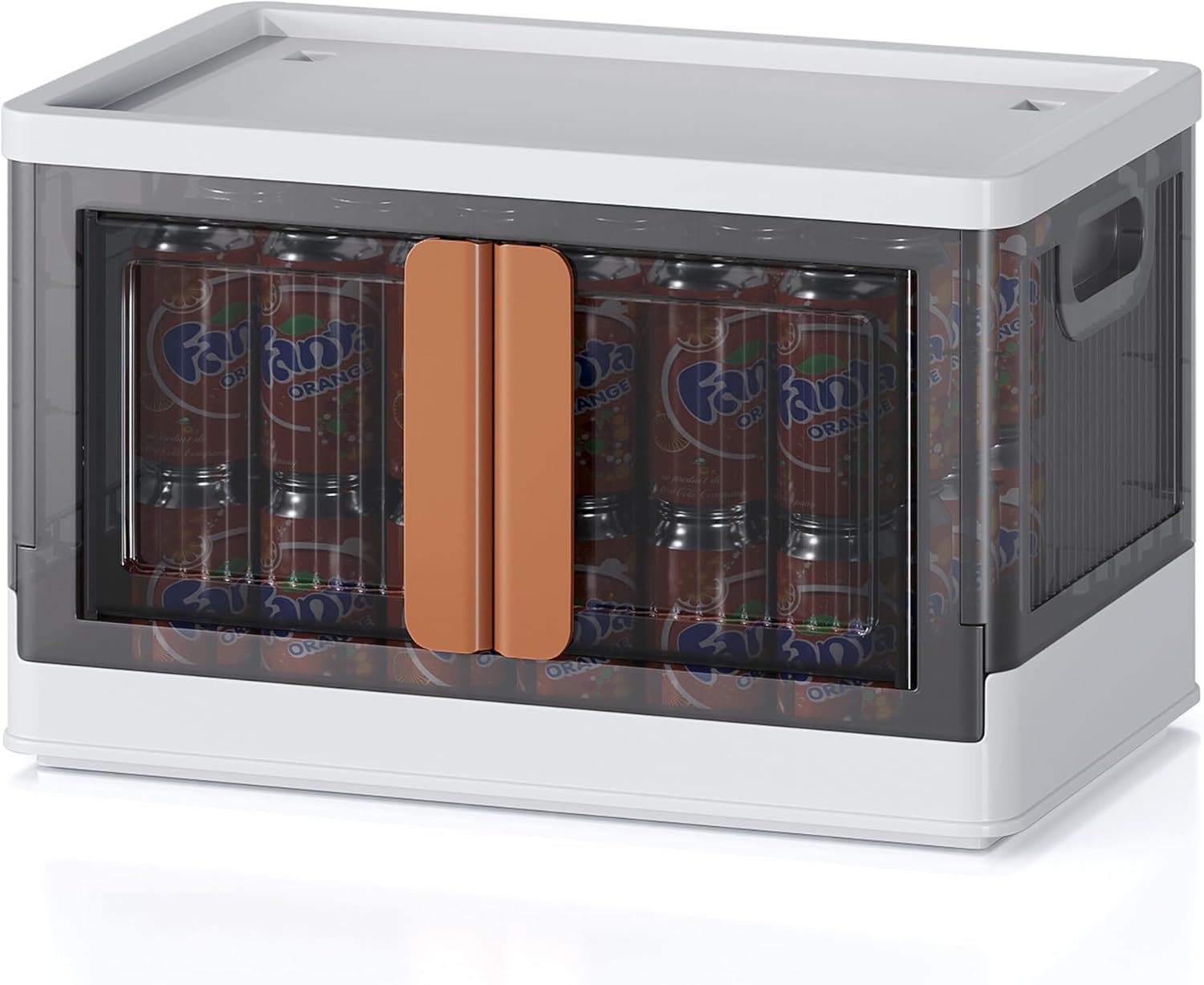 8.4Gal Collapsible Storage Bins with Lids & Wheels - 1 Pack Stackable with Doors, Heavy-Duty Plastic Containers for Home/Office, White