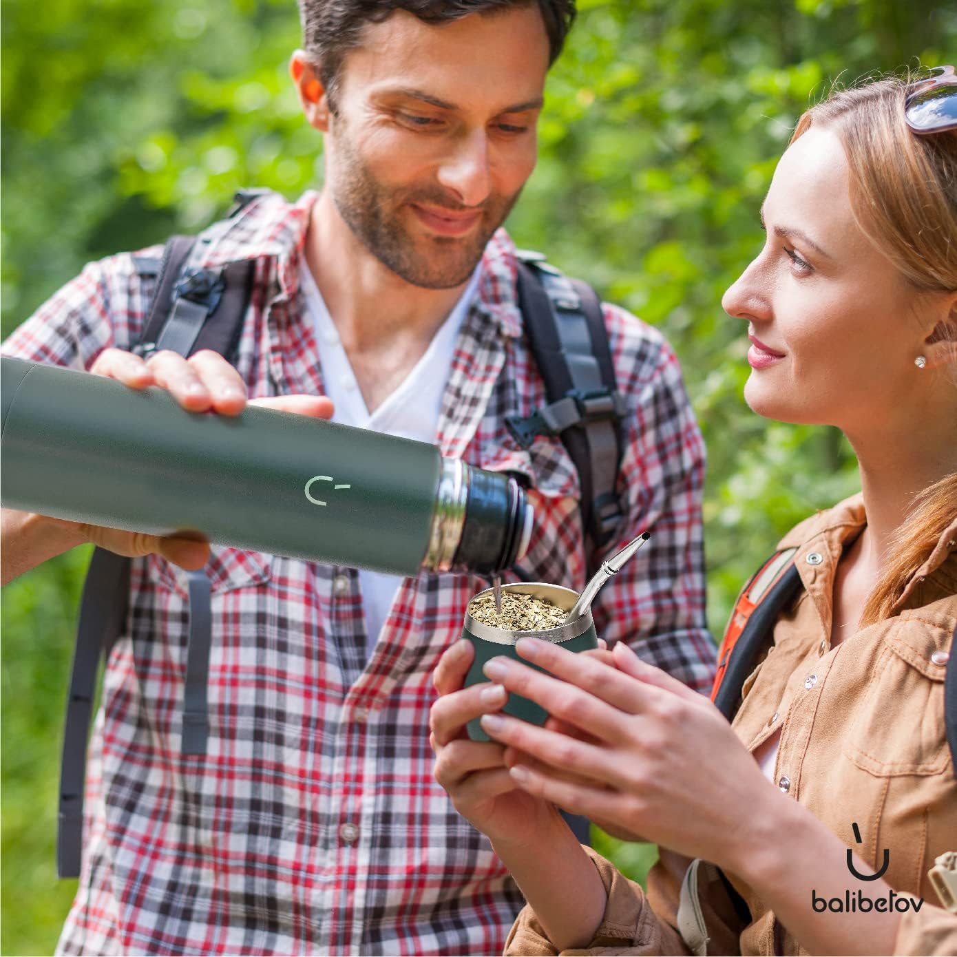 BALIBETOV Complete Yerba Mate Set - Modern Mate Gourd, Thermal Flask, Bombilla and Cleaning Brush Included - All Premium Quality 304 18/8 Stainless Stee (Green)